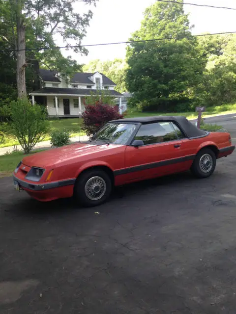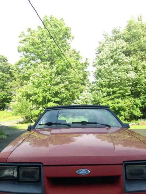 Beautiful classic 1986 Ford Mustang LX Convertible. This car has had two owners, and has 99,000 miles. Runs about 20-25 miles to the gallon, holds 12 gallons of gas. The interior and exterior of the car is red, the convertible top is black. Includes a radio and a cassette player. Minimal scratches/dents. Automatic transmission, power steering, tires only a few months old. The car is fully functional and drives great. It's clean and well taken care of. The convertible top is electric and works, the windows are roll down style. The alternator and distributor are replaced, new spark plugs, the exhaust system is replaced, there is no catalytic converter. The air conditioner does not work, but the heat does. Every repair/damage can be accounted for with documentation. The car does not have to go though vehicle inspection. It's a gorgeous car that has served me well.