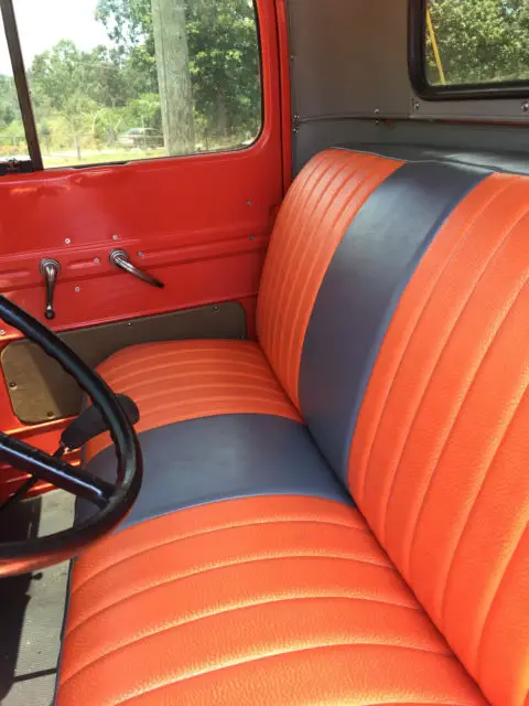 Transmission makes noise in first and second gear, Not sure what problem is, did not do this when first built. All original motor, interior. board 30 over. Only thing missing in interior is sun visor. Bracket is there but missing visor. All blinkers incorporated into original light system. No show truck. Paint is Hugger orange and blue. New shocks and brake system all the way around. All gauges work. Windows are dark glass. crack in vent glass on passenger side.