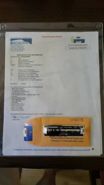 This is a desirable car... Marti Report is included as well as I ordered a new door tag (pic below).