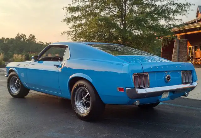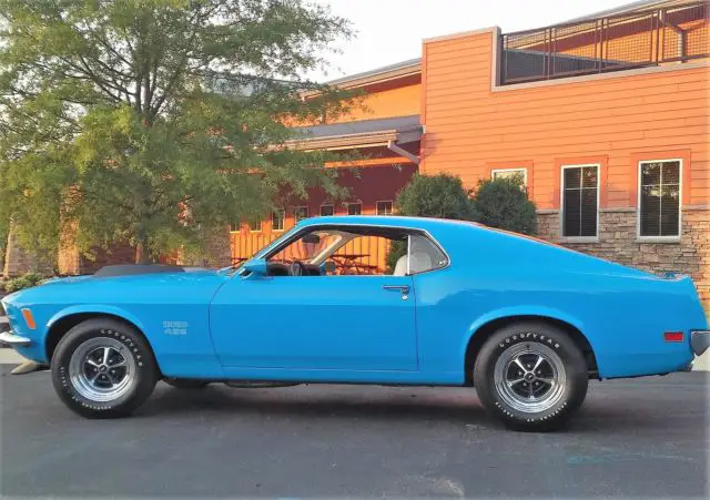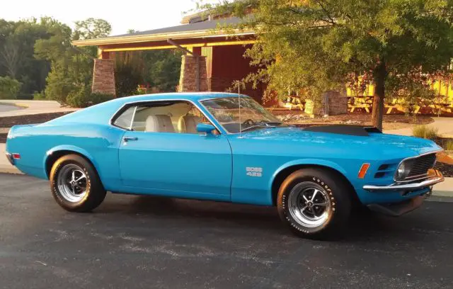 1970 Ford Mustang Boss 429, Grabber Blue with White Interior, One of THE nicest examples I have ever seen! Spectacular car. CONCOURSE RESTORED - 1 of 499 produced - FULL DOCUMENTATION - BY KEVIN MARTI - KK #2153, Serial # 0F02Z110422, Built 9/18/69 25k Original miles! Just test drove car and it runs and drives fantastic! This car feels like a new car and will not disappoint in any way! Great provenance and very important owner history included which makes this car very special and worth noting. The very best national restoration professionals have owned and spent countless hours on this car. The quality of work on this car is second to none. A true original, correct, low mile, numbers matching blue chip investment grade show car! Fully documented with original invoices, manuals, receipts and history. The number of original and correct Boss 429 parts on this car is staggering. Date correct original glass, original and beautiful condition interior, all concourse correct original suspension, steering and brake components as well as correct fasteners and paint markings! More pics and info coming soon and available at www.benzamotors.com