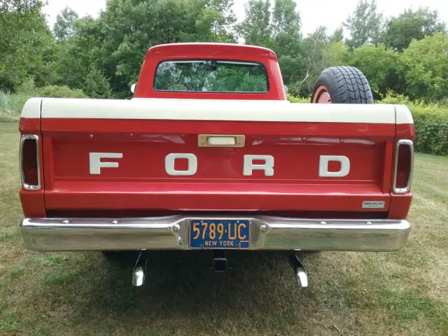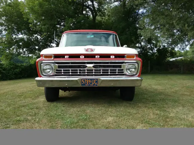 Here is a bit of history about my 1966 Ford F-100. First of all, I've always dreamed of owning a 1966 Ford F-100 since I was a kid. I believe this model year is not only the best looking pick-up Ford ever made but, also the finest engineered pick-up of the era. I spent years on my questto locate one in the finest original condition as possible. However, I did not want one which was a frame-off restoration or in show condition; only to trailer it around or drive it a few miles each year to car events. I really wanted a truck that looked awesome and was mechanically sound that I could drive wherever and whenever I wanted without worrying about breaking down or getting a stone chip in the paint. Then one day in 2008, I found one on the internet that looked great and from the description sounded perfect. I contacted the owner and we had a very nice and long conversation. After talking with him at great length and learning about the history of the truck; I could tell he was an honorable and respectable man. I thought to myself this could be the one! Since the truck was clear across the country an hour outside of Dallas, I hired an outside auto inspection company to evaluate the truck. When I received the multi-point detailed written inspection report, I was thrilled to find they gave the truck stellar marks and they also included many photos. Now I started to get real excited! (original report included in the sale). I immediately contacted the owner and we came to an agreed price. A few days later, a buddy of mine and I flew to Dallas to get the truck and drive it home. Once I laid eyes on her, it took me back to when I was 10 years old. The truck was gorgeous inside and out! After Istarted her up, I ran to the rear of the truck to hear the 352 V8 exhaust note coming out of the dual pipes. Yup, that's the sound I remember. After a short visit, my friend and I headed out to make the 1600 mile trek back to Rochester, NY. In a nut shell - we had a blast! The truck was not only powerful but, drove beautifully and cruised at 75 mph effortlessly. Did I mention this was during a heatwave in July? Well, that was not an issue since the truck has factory ice cold air conditioning! Pretty rare for any pick-up in 1966. Now, let me get to some details about the truck: