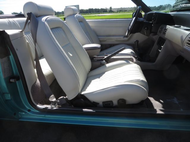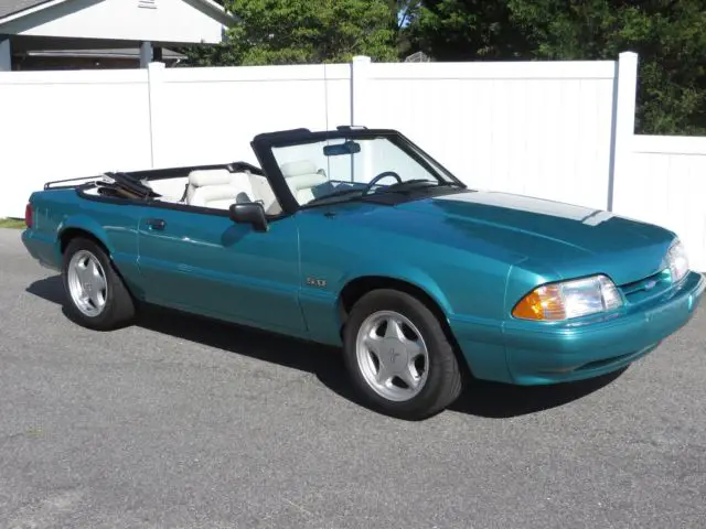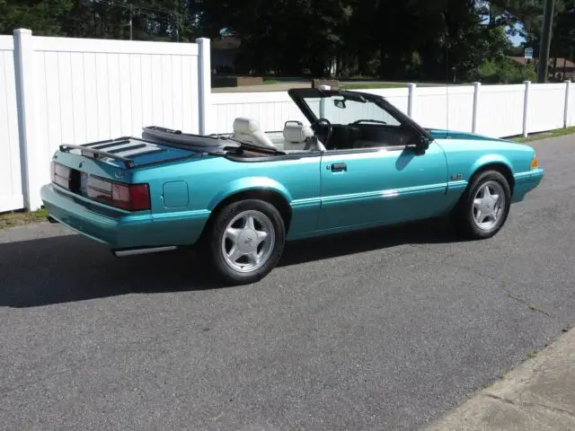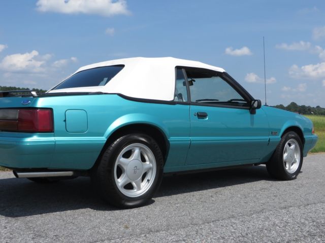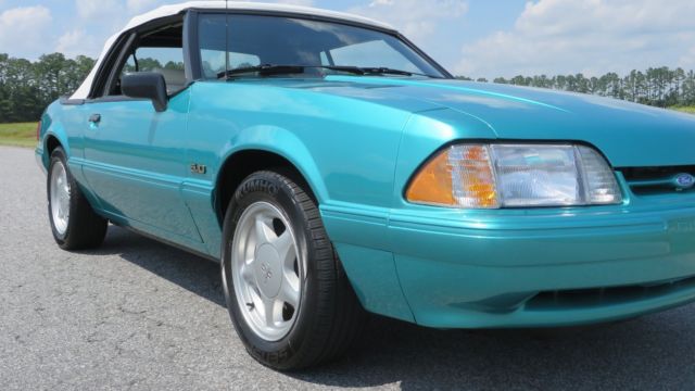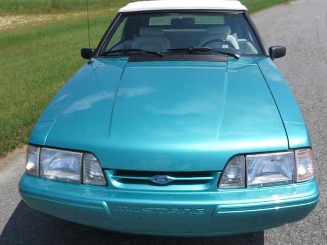 This is a 1992 Mustang Convertible 5.0 5 speed. This car has new convertible top, new leather seat covers, and new professional paint job (original Calypso green). There is no rust,A/C blows cold and every thing works as it should. This car has had no modifications and is very original with all the vin stickers in place on the hood,fenders, trunk etc. I would not hesitate to drive this car anywhere. All original paper work comes with this car including the window sticker and sales invoice. I'm not interested in any trades! Call with any questions 252 341-7044