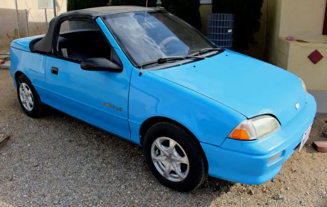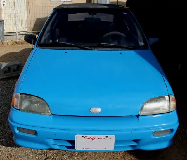 This Geo Metro LSI Convertible is in very good condition. It has an excellent running engine and 5-speed transmission. It has newer tires and rims. The doors and seats were reupholstered in blue, and at the same time the carpet in the car and trunk was replaced with a new black one. The black boot covers for the convertible top when it is lowered are complete and unbroken. The brakes and struts are all good. The body has no major dents, just a few little pits on the hood and left side. The body has no rust except for one spot on the under body on the passenger side as shown in the picture. I installed a new Kenwood radio with IPod capabilities and speaker system. It has two front and two rear speakers. The heater works great. It didn't come with an air conditioner.