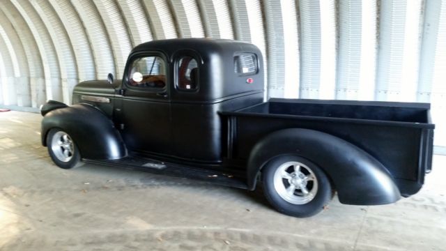 The truck has a 350 Chevy v8, a TH350 automatic transmission with lokar shifter, billet aluminum tilt steering column, lokar shifter and emergency brakes. lights, wipers etc all work fine. Digital odometer and new gauge cluster showing a little over 3,000 miles which is how many have been put on the truck since it was restored. The truck has been professionally modified to make it an extended cab. It has a short bed with a fuel cell located below the bed. The truck is an all steel body with no fiberglass panels at all. the tailgate opens but is currently held shut with two stainless bolts instead of chains for a cleaner look.I have a new aftermarket a/c system complete with compressor and ducts that goes with the truck, I also have new power window kits for both rear windows. All off the glass is good and the front door windows roll up and down fine. The doors and hood all open nicely as well. I have a full photo album documenting the build of this truck. I have displayed some of the custom sheet metal in the bed of the truck which are actually interior panels to finish off the inside around the rear windows and behind the seat. There are lots of great parts that go with this truck so I'm sorry if I don't list them all but it's another two or three boxes worth. The body work is good except for above the cab where there are a couple of spots of body filler cracking and above the passenger side door where there was a bondo application that needs to be ground down and smoothed out. the truck is in a semi gloss black which is a paint and not primer. lots of chrome and aluminum in the engine compartment. It has been lowered and you can just about get a can of coke under the front bumper. It has a great stance and a nice sound as well. Overall this is a very high quality build that has been driven while being upgraded over the past few years. you can drive it as is or take it to the next level with a new paint job.I have a clean title with the truck. I am selling this pickup truck as is and where is. Please ask any questions before bidding. the truck is available to inspect or test out by calling 410-961-7872 to schedule an appointment. I have done my best to describe the truck accurately. Please see the pictures for a better idea of the overall condition.I require the winning bidder to contact me within 24 hours of the end of the auction to make arrangements for payment and pickup. I can help get a shipping quote if you need the truck shipped to you.I accept certified check, bank wire transfer or cash for this truck. I will not accept paypal for this auction.
