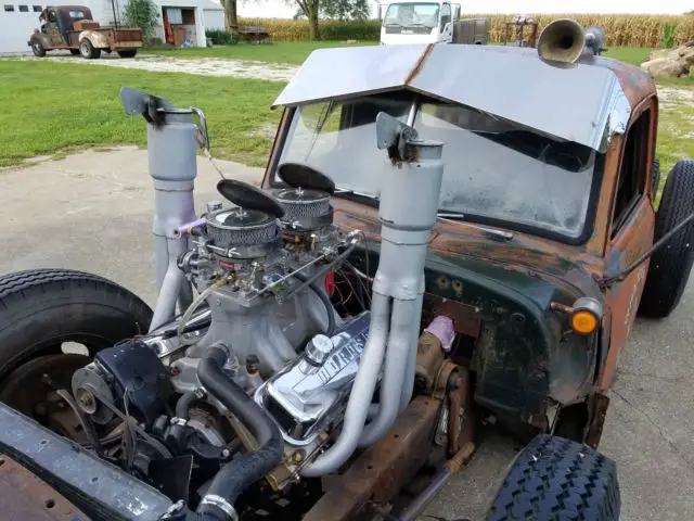 1953 GMC grain truck turned into a rat rod. 454 bored 60 ove, tunnel ran and two new carbs, big motha thumper cam, motor has about 20 miles on it. Harley gas tank for console, cooler mounted in back, whiskey barral is gas tank with metal insert Piston turn signals and more. 2015 Best in class at Duck Tail Indiana . sold with bill of sale, no title. I have always trailered it to shows