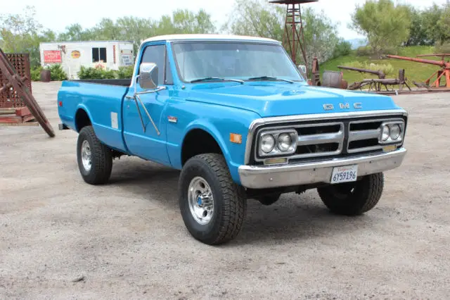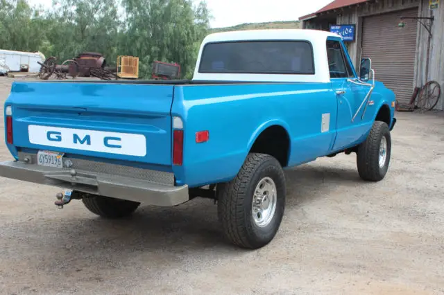 1972 GMC Pickup K20350 Crate engine with approx 5000 miles, Edelbrock aluminium intake manifold, Holley 600 Carb, MSD distributor, header exhaust, dual exhaust,Turbo 350 Automatic trans with a shift kit, NP205 transfer case, Dana 60 rear end,Disc brakes, Dana 44 with Spicer locking hubs,285/75/16 Yokahama Geolander tiresInterior is clean and uncut dash. Everything works, blinkers and lights. Couple small tears in the driver side of the seat,Paint is new, driver quality not a show truck paint job.All original GM body panels and sheet metal.Bed is Rhino linedRuns and drives fantastic, extremely reliable.Please call before 9 PM Pacific time760-315-2712