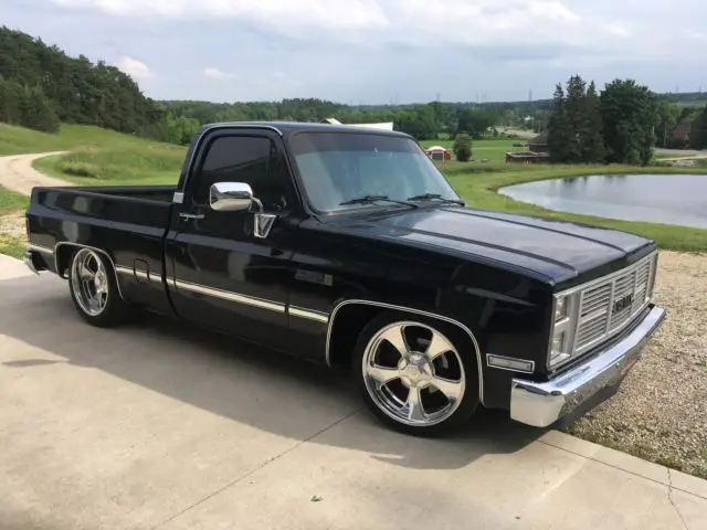 Southern Tenn truck with 5.3 LS swap 4L60 overdrive transmission has GPS speedometer connected to original dash New Interior(headliner carpet door panels) Factory air(cold) 5-7 drop C-notch drop spindles axle flip kit New 20X8 and 20X10 wheels New tires Alpine stereo duel exhaust rino lined box nice deep black paint this truck is ready to drive