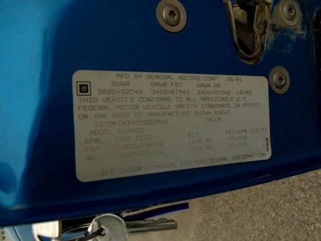 Solid runner go anywhere truck. New front axles. Good brakes and Yokohama Geolander AT 235/85R16 Tires. 4.3L V-6, 5 speed OD trans. VIN: 1GTDK14Z4MZ532864. Dealer installed air conditioning. Great mileage. Roll up windows with tinted rear slider. Absolutely no, none, zero rust. This truck will sell without the tool box and is for sale in more than this market. So it is subject to sale and removal from this venue at any time.