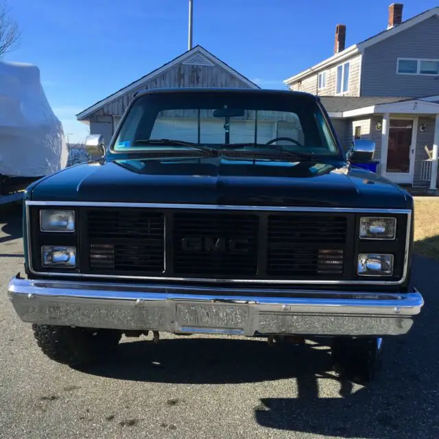 1986 GMC 4X4 Square Body regular cab pickup. Recently registered and in use by previous owner with current inspection sticker. New 2 tone blue/black pain, new driver fuel tank & sending unit, passenger tank needs straps installed but parts are included with sale, all new brake lines and front hoses,new front pads, rotors & calipers, new side mount exhaust, new shocks, complete tune up, new clock thermostat, added trans cooler, desmogged, elder lock air intake (hose needs to be connected), deleted cruise control, deleted ac, super clean interior. Few sun cracks on dash, one small rust hole on inner rear drivers side bed corner about half dollar size, corners are good, usual surface rust underneath but no rot. Tire rears still meaty at 70% tred fronts at about 40%.Car starts, runs, shifts drives and stops great. Original working radio.Please note pictures are great to give you an idea but please come see in person, could use a few cosmetic pieces like interior passenger door pull handle, but overall a great and rare find in this condition, use as is for its intended purpose or with a little effort have yourself a great show car!