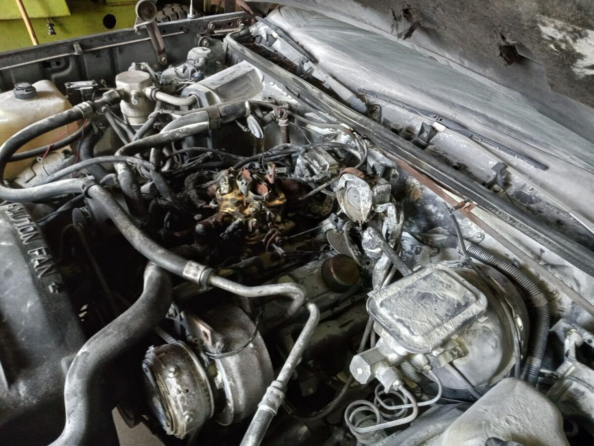 This vehicle was in good running condition, until crazy Tony burner the carbonator, and I had to put it out with a fire extortioner. I have this car for about 6 years and drove it occasionally around the farm, it runs fine. When I first got I spent about $900 on it replacing the valve guides and brakes. It has not been in an accident and there is very little rust, except where the owner sanded the top and a small place on body and sprayed some cheap primer on. It would be a good restoration with the wires repaired from the fire. I have not cleaned it up and one tire need air.I am sorry about the wires and fire, crazy Tony was diving around the shad with the breathed off. Before it was running fine. I had it sold for more money, but I am too old to mess with it .I am sur the engine is good, and everything worked ok. The seats are not original. The owner was going to restore it so all the chrome plus some new Gm pieces are inside the cab. I have the original title from the original owner. It has not been re reregistered since 1984.