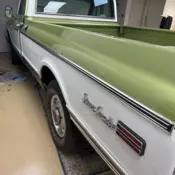 This 1971 gmc is in original condition meaning it still has the original green paint from the factory and now has a lifetime of patina the body is extremely straight and rust free except for a very small amount on the passenger rocker see photo and the passenger fender is a little banged up also see photo. This truck is so original it has it’s original drivetrain a 396 big block a turbo 400 transmission and leaf springs on the rear end originaly a California truck and now in Las Vegas I have had it for 16 years I used to drive it on occasion but now it’s been sitting for years so it’s time for some one else to enjoy it will need a few things to get it in a good running condition again like the usual tune up belts and hoses also a carburetor and fuel tank cleaned out and then your driving this all original survivor with a rare protect-O-plate