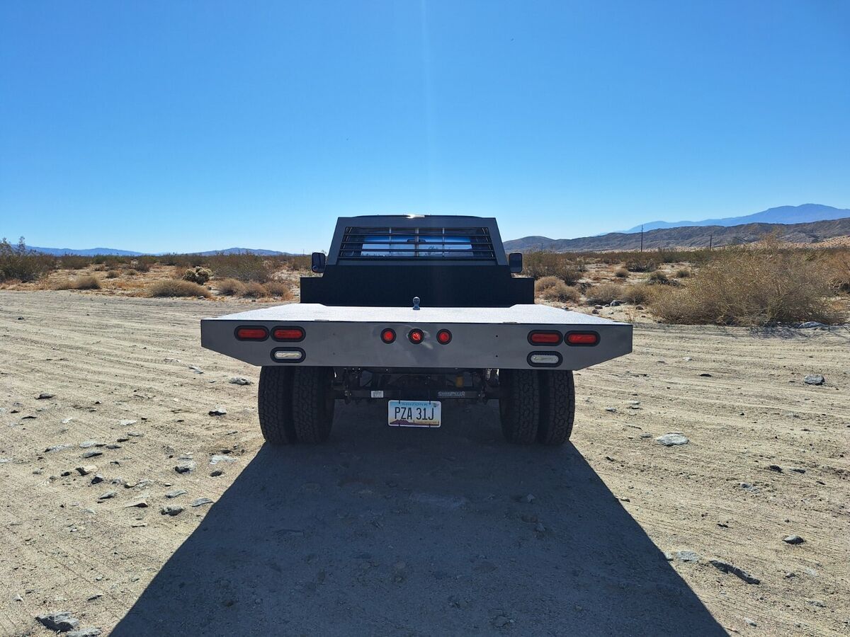 Wonderfully preserved body with a solid driver quality repaint of the factory colors. There are some scratches and scuffs hidden at the back of the cab and front of the bed. There are two dents in the right front fender. The front bumper is from MOVE with all the beefy upgrades and additional 4 point mounting braces. The flatbed is super heavy duty with thick steel tubing and plate steel floor. There is a B&W turnover ball for gooseneck or fifth wheel and a 10k hitch for bumper pull. The truck originally came with these matching metal bed sides that interlock and are super heavy duty but also super heavy. I made some lighter wood/aluminum ramp bedsides to use when towing off the gooseneck.