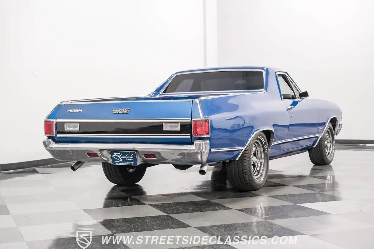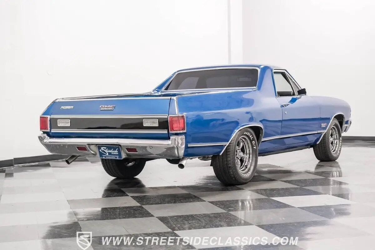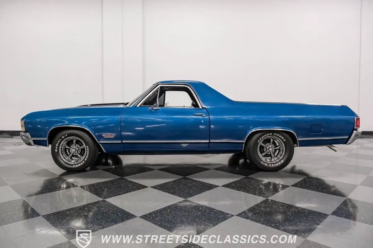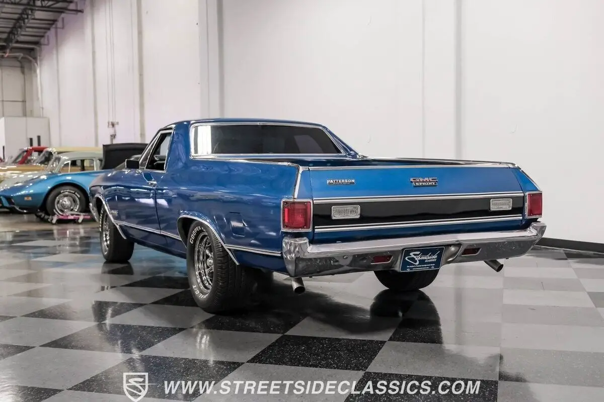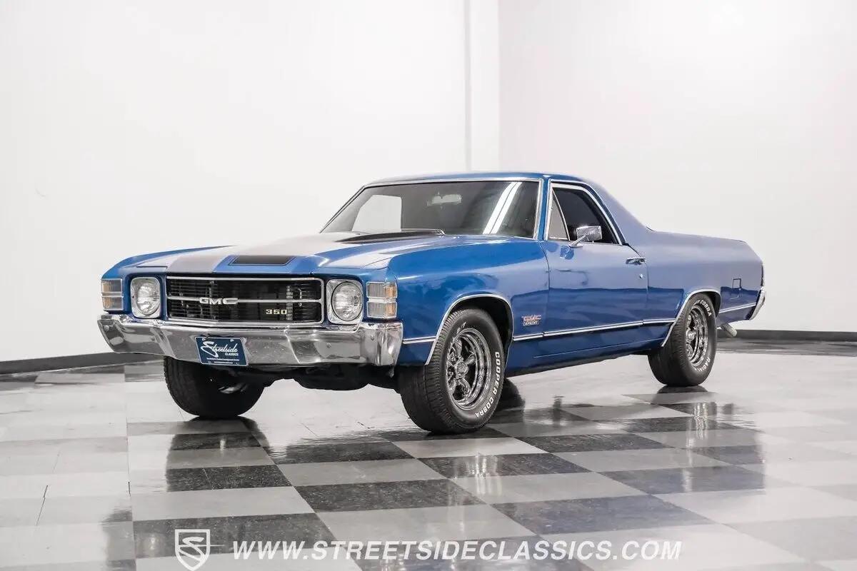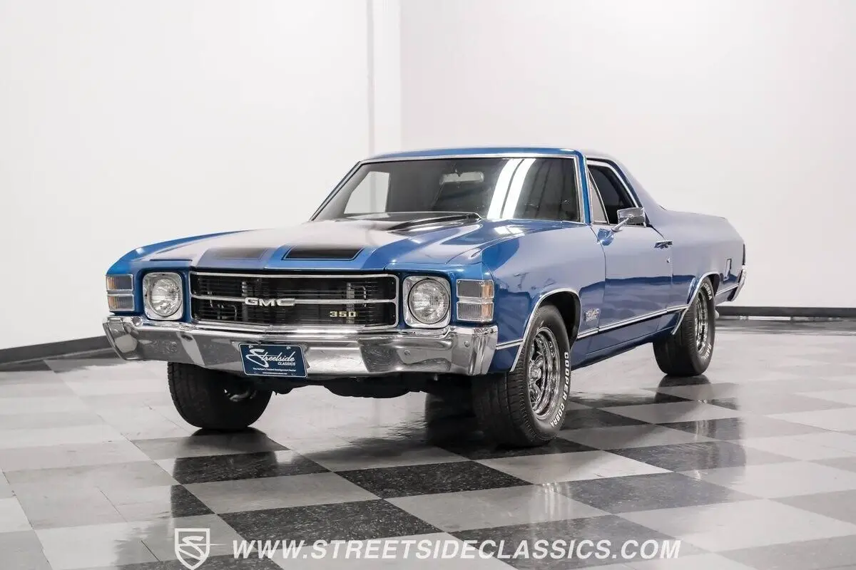 Vehicle Original VIN : 536801K100949This rare 1971 GMC Sprint is a great way to get the look of an El Camino, but with a more distinct and interesting character. Not only are they a rarer sight today, but in this debut year, the Sprint was made in small numbers - only 5536 were produced for the 1971 model year. By comparison, Chevrolet delivered 41,606 El Caminos that year. There was a solid investment in this GMC with nice body panels, bright chrome bumpers and a distinctive blue metallic paint. Just like the El Camino, the Sprint has an instant muscle car level appeal, accentuated with a cowl hood, black SS style hood stripes, blackout grille and dual exhaust tips. The look is further enhanced with the addition of a set of chrome 15-inch American Racing wheels wrapped with Cooper Cobra Radial G/T tires staggered 255/60R15 front and 275/60R15 rear for just the right stance. The black interior features a comfortable bench seat, original GMC logo steering wheel and a retro-style AM/FM/AUX stereo with Bluetooth capabilities. Additionally, there is a SunPro temperature gauge mounted on the driver's side A-pillar. The driver and passenger are kept cool with an upgraded Vintage Air system. Power and performance are provided by a healthy 350 cubic inch small block engine mated to a TH350 automatic transmission. The engine bay is very clean and features an Edelbrock Performer EPS aluminum intake manifold topped with an Edelbrock carburetor and open element chrome air cleaner. Additionally, this Sprint is equipped with chrome valve covers, power steering and power brakes. A dual exhaust system fitted with Xlerator performance mufflers produces a throaty muscle car rumble. HIGHLIGHTS: • Rare Sprint variant of the El Camino • 350 V8 engine • TH350 transmission • Vintage Air system • 15-American Racing wheels • Edelbrock intake • Edelbrock carburetor • Cowl hood • Retro stereo with Bluetooth Stylish, powerful and easy to drive, this great-looking 1971 GMC Sprint is ready to roll. Call today!
