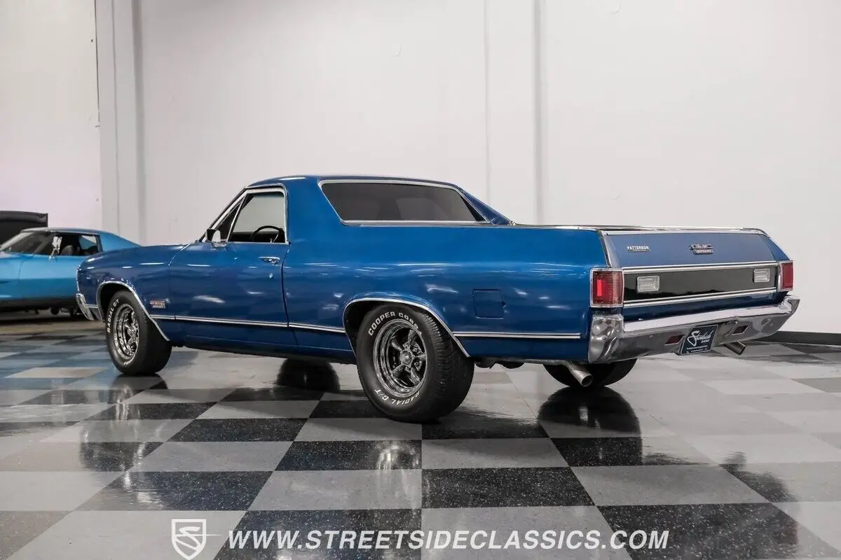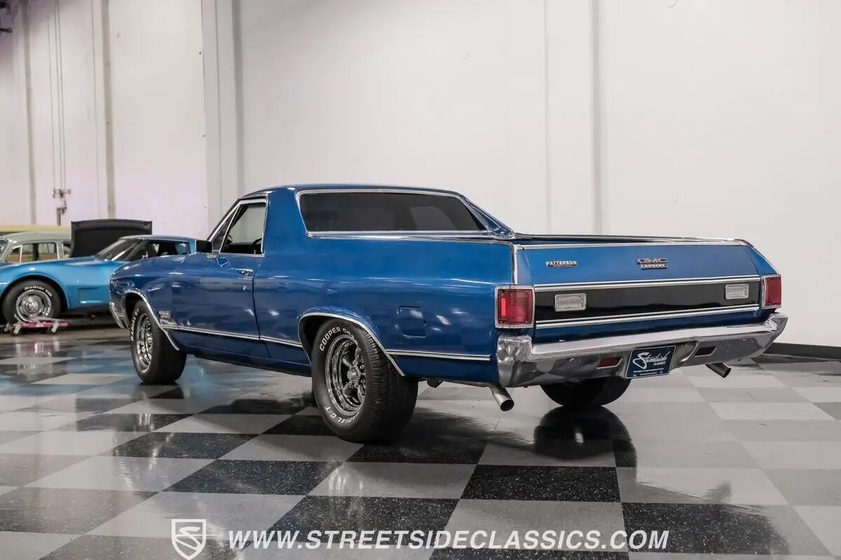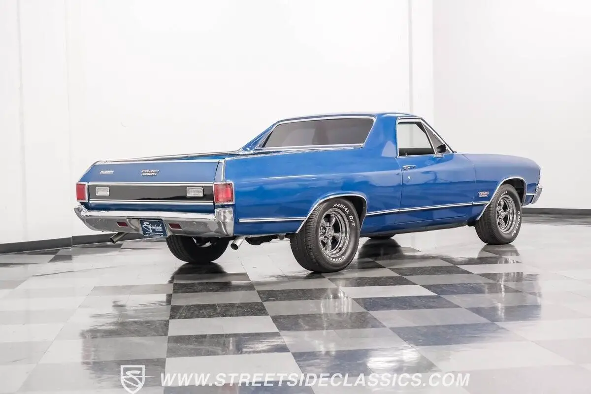 This rare 1971 GMC Sprint is a great way to get the look of an El Camino, but with a more distinct and interesting character. Not only are they a rarer sight today, but in this debut year, the Sprint was made in small numbers - only 5536 were produced for the 1971 model year. By comparison, Chevrolet delivered 41,606 El Caminos that year. There was a solid investment in this GMC with nice body panels, bright chrome bumpers and a distinctive blue metallic paint. Just like the El Camino, the Sprint has an instant muscle car level appeal, accentuated with a cowl hood, black SS style hood stripes, blackout grille and dual exhaust tips. The look is further enhanced with the addition of a set of chrome 15-inch American Racing wheels wrapped with Cooper Cobra Radial G/T tires staggered 255/60R15 front and 275/60R15 rear for just the right stance.