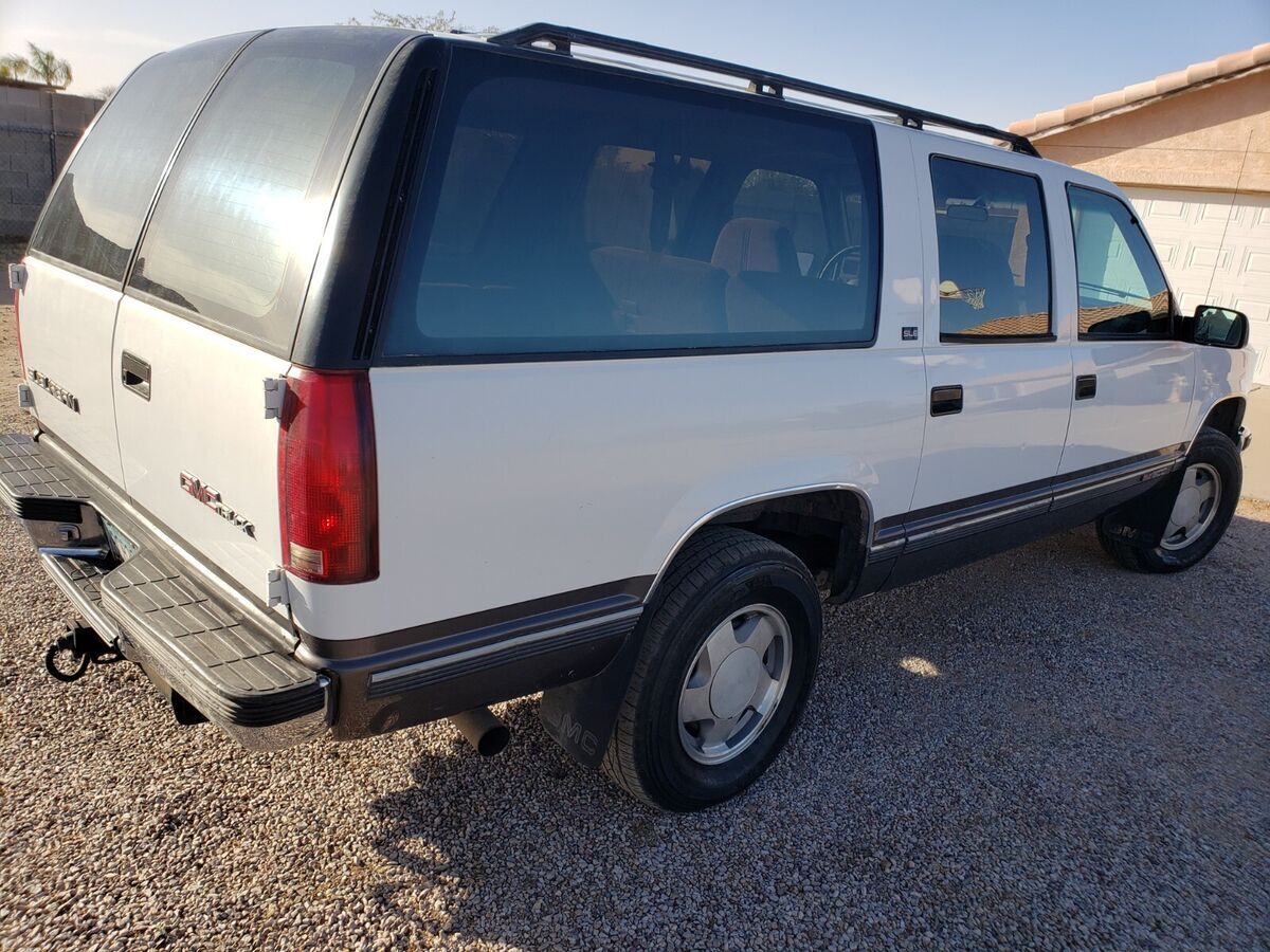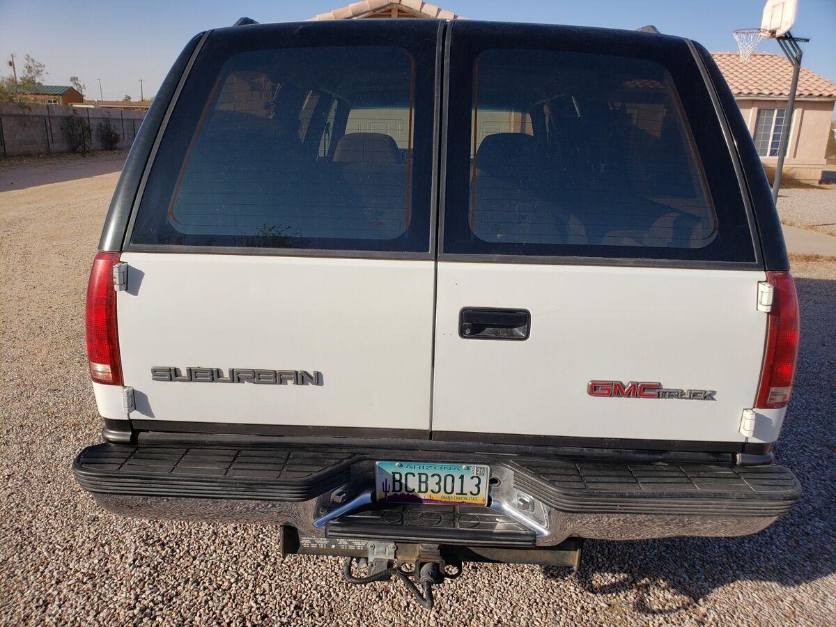 1993 GMC Suburban 1500 4-wheel drive. 3rd owner. Owned since 2013. Comes with 3rd row seat.Truck odometer is in Kilometers. Has approximately 168000 miles if I did the math right.Speedometer is in Kilometers and MPH. Truck was brought down to Arizona by Snowbirds from Canada.Has a clean Arizona title. I'm color blind, so the color of the interior may be different than stated.This Suburban is all stock expect for radio speakers. Runs great and has good paint.AC works, but leaks. I didn't drive it in the Summers.Reason for selling? I bought a newer SUV and don't need both.Cash exchanged at PNC Bank in Casa Grande, AZ.