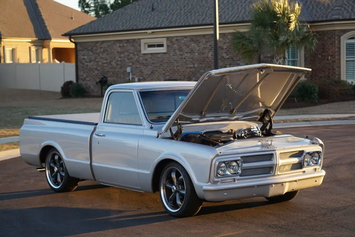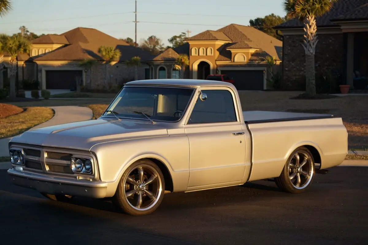 Rare 1967 GMC c10 pickup 350 crate engine with a mild cam, turbo 350 transmission, Edelbrock fuel injection throttle body, full custom interior upholstery, led lights all around interior and exterio, Cal-tech Traction bars