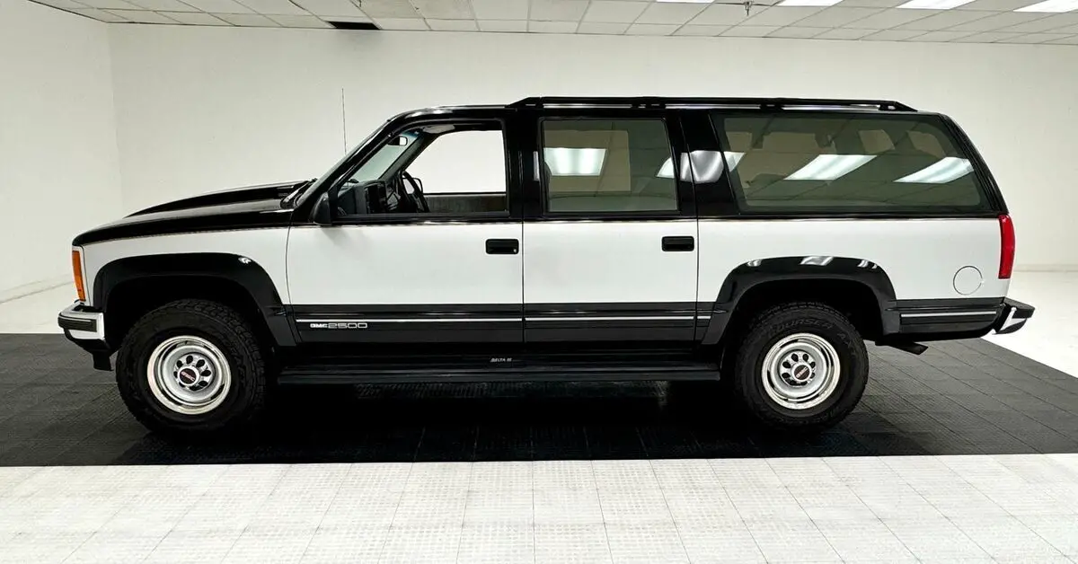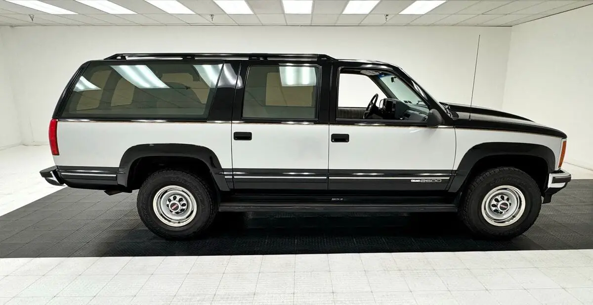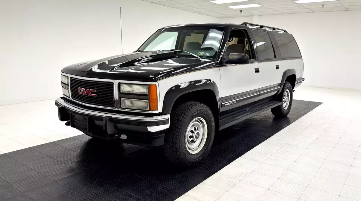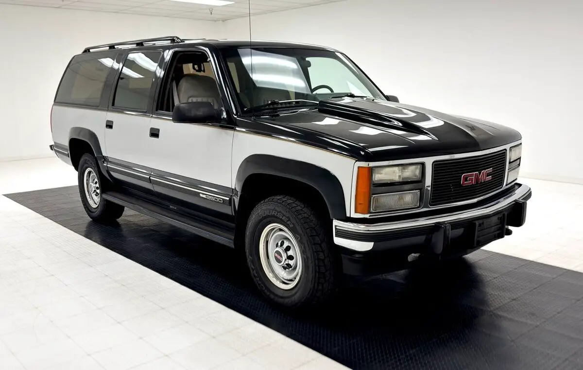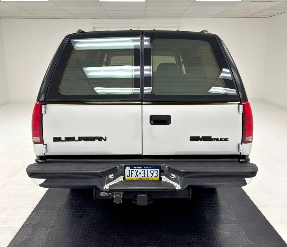 1993 GMC Suburban 2500 4x4 For consignment, a 1993 GMC Suburban 2500 4x4 with a title verified 171,456 actual miles and more new parts than the bionic man. Bumpers, lights, windshield, dash and trim panels, carpet, headliner, (re-covered), weather stripping, brake lines, brakes, fuel sending unit and lines, serpentine belts, pulleys, alternator, all newer! Exterior A striking sandwich of silver between long stretches of black paint does nothing to mask the sheer size of this GMC's, more than 18 feet of stamped steel, roadworthy goodness. A double gold pinstripe under the top black portion is a subtle bit of styling while a black running board extends proportions between the wheels. Up front, GMC's stacked lights between a flush black grille and on this truck, a cowl hood rises above it all. A wide band of windows creates an open greenhouse, tempered by tint but providing a clear view of the world outside for all occupants. Not enough storage in the way back? A roof rack is ready and waiting for the extra gear and while we're up here, we note some checking and oxidation in the sun faded surface. Beyond that, there are remarkably few blemishes on this truck and we could find no glaring imperfections. 16-inch wheels wear LT265/75R16 AXT tires, ready to take on the world with 10 ply domination. Interior Just as with the outside, the inside belies the mileage on the truck, clean and tidy with nowhere near the wear you'd expect to see. Various shades of gray adorn the interior beginning with the door panels with cloth tops over carpeted lowers and standard GM switches in textured gray plastic. Up front, bench seats, essentially captains chairs, sit high and also wear gray cloth, the driver's seat showing slight compression and a touch of discoloration but otherwise in very good condition. Row 2 is a 60/40 split bench, well padded and clean and row 3 is a straight bench with sizable storage shelves on each side, topping the inner fender wells. A standard GMC steering wheel fronts a basic instrument cluster, pure analog 90's and simple. A Kenwood AM/FM/CD with USB and aux capability brings things into the 21st century, but only briefly as the floor mounted range selector brings it all back, sitting on low pile gray carpet that is clean and protected by rubber mats. An overhead console provides rear air controls, cubbies for sunglasses and a garage door opener and a plush, gray headliner rises above cleanly. Gray carpet also provides coverage for the cargo area and is clean and will have you wondering if an extra digit was added to the mileage! Drivetrain Under the hood, an original looking 454ci V8 with electronic fuel injection and mated to a 4-speed automatic transmission that along with a transfer case, sends power front and back where it finds 3.73 gears. Naturally, power brakes are on board for this big hauler, with disc up front and drums in the rear. The engine bay is in very clean condition and it's clear someone pampered this truck. Undercarriage Plenty of surface rust underneath and some residual oil, but the knuckles are clean, and the truck is free of obvious invasive rust. The single exhaust still flows through a stock style muffler and exists behind the left rear wheel. Suspension consists of torsion bars up front and leaf springs in the back. Drive-Ability With a freshened interior and clean exterior, it feels like 1993 all over again as we crank the big 454 to life and roll out onto the test loop. It's smooth sailing in this land yacht that tracks straight, provides fine acceleration, and instills a feeling of confidence and safety in its size. The ABS light is on, common for early 90's GMCs, and the power mirrors do not move to the right. Beyond that, all functions on board operate as they should. While Classic Auto Mall represents that these functions were working at the time of our test drive, we cannot guarantee these functions will be working at the time of your purchase. Here is your family hauler, race team support vehicle, backroads luxury ride, or Costco sized grocery getter. A comfortable Suburban with three rows, freshened inside and out, and in good condition. Plus, it's got a hitch and electrical hook up in the back which only expands its capabilities. For those who don't remember, 1993 was 32 years ago! So, this is practically a classic but a usable utility vehicle as well. 1GKGK26N7PJ721335 1-USA G-General Motors K-GMC MPV G-8001 thru 9000 GVWR K-Conventional 4X4 2-3/4 Ton 6-All Purpose Vehicle N-7.4L L19 V8 7-Check Digit P-1993 J-Janesville, WI Assy Plant 721335-Sequential Unit Number Classic Auto Mall is home to more than 1,000 classic and collectible vehicles for sale via consignment in a climate controlled 336,000-square foot showroom (that's more than 8 acres!). The largest single location consignment dealer of classic and collectible vehicles in the country is located in Morgantown, Pennsylvania, just 1-hour west of Philadelphia off Exit 298 of the I-76 Pennsylvania Turnpike. For more information visit or call us at 855-201-7026. Contact us anytime for more information or to come see the vehicle in person. There is no guarantee of mileage. A $299 Dealer Administrative fee is not included in the advertised price. With so many great cars, you know we have a lot to talk about, and we do that each week on the Classic Auto Mall Podcast with host Stewart Howden. Stewart discusses new inventory as well as trends in consignments and car prices, while interviewing celebrities and automotive professionals about amazing cars and their history. Tune in each week to the Classic Auto Mall Podcast wherever you enjoy listening. You can also watch on YouTube!