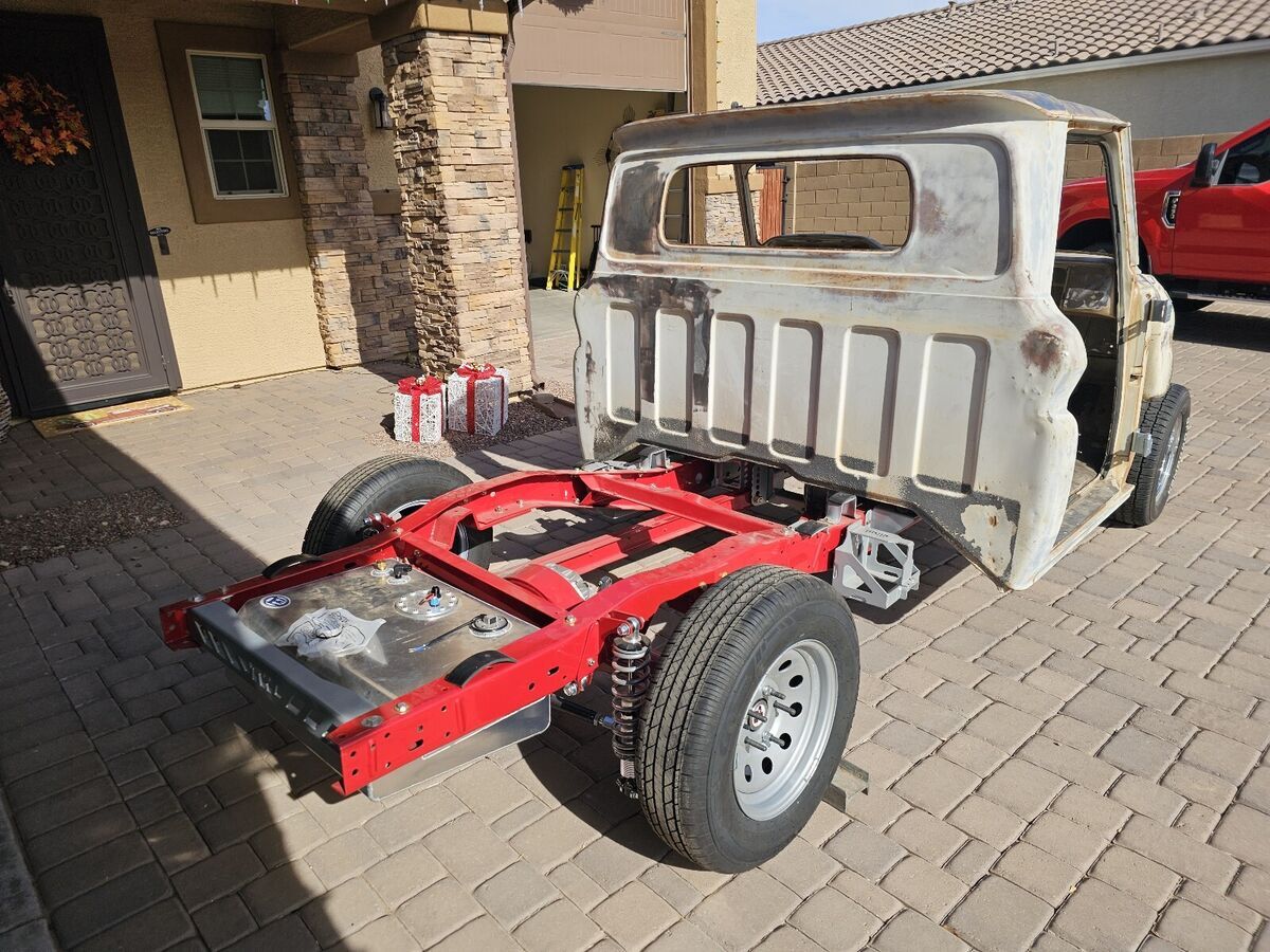 1964 GMC Truck. Frame was disassembled and all brackets individually powder coated. QA1 rear suspension, shortened Quick Performance ford 9 inch, 4:11. Boyds fuel cell. Snowden bench seat. Tin works frame stiffener and crossmembers, New LMC doors, fenders, doors / cab seals, new misc door parts, 600 lbs big block front springs. Machined 454 .030 over 4 bolt gen 5 block. Small rust through on passenger floorboard currently being repaired. 31 k in receipts. Truck has been loosely assembled for transport, will require complete teardown. No trades, being sold 'As-is'. More pictures on request. Located in Surprise Az.