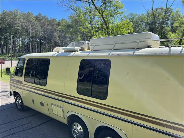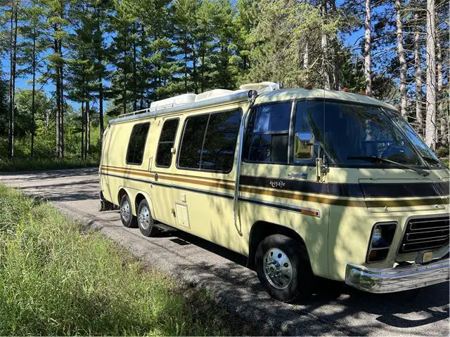 Vehicle Original VIN : 123456789Offered for sale for the first time in more than eighteen years is a classic GMC “Jimmy”Royale Coach. Only the 3rd owner since new, this RV has had an extensive list ofrebuilds, repairs and upgrades to make it one of the most solid, strong running and original RV’s to hit the market.Equipped with a rebuilt Oldsmobile Toronado Rocket 403CI V8 engine and front wheel drive, The Royale has plenty of power to handle today’s long journeys. Newly rebuilt transmission shifts effortlessly, and the air ride suspension allows the entire vehicle to float down the road. 6-Wheel Chrome rims and low mileage BF Goodrich Dueller tires can handle most terrains with ease. Fully documented 83,000 original miles since new and only 15,000 miles since 2005.Some of the key features are: Fully appointed interior including reclining and swivel captain’s chairs, CB Radio, custom wood cabinetry throughout, brand new microwave, and a countertop plug-in blender, satellite TV dish, 10-disc CD changer, 3 way functioning refrigerator (110V, 12V and LP gas) and a new power inverter. Quad bunks with a conversion wedge to make the entire sleeping area a king size bed, Full bath with tub and shower includes a large cedar closet for hanging storage as well. Includes the optional central vacuum and a full length retractable awning which is color matched to the exterior. Brand New front Windshields and gaskets installed in 2021. The Coach comes equipped with an Onan 6000W generator, as well as 30 AMP shore power capability and both freshwater tank and city water hookup with step-down regulator. It also includes a removable/retractable aluminum carrier with a folding ramp with a 500lb load capacity for bikes, scooters,overflow equipment etc. Here is the extensive list of repairs and upgrades the coach has received since its purchase in 2005:Mechanical & ElectricalNew supplemental brake vacuum booster7 New Alcoa 16" wheels and matching nutsNew Caspro electric supplemental fuel pumpNew alternator (replaced twice) 7 Bridgestone AT Revo Dueler LR 225 16" E rated tires New air cleaner and oil filterNew Thorley headers Wheel bearings repacked Transmission tune upNew 3" exhaust and mufflers New left side rear suspension air bag; 2015 replaced right air bagNew Caspro transmission aluminum oil panNew black water tank Major engine tune up New Caspro thermostatNew rubber fuel lines New ignition switch New alternator protection cable3 new batteries (automotive, generator and house) New manual water cut off valve New rear brakes2 new battery cutoff switches (automotive and house) Auto A/C serviced- new freon Chassis lubricationNew cruise control transducer vacuum servo and vacuum hoseReplaced right and left front brake caliper and hoses Air suspension compressor rebuiltNew LP gas valve Radiator flushed- new antifreeze protection to -29 F Generator serviced- oil, filter, plugsHorn switch and contacts refurbished Rebuilt carburetor Replaced generator fuel pump and oilNew radiator stone guard New fuel filter New generator bridge rectifierNew windshield wiper blades New distributor cap and rotor New generator/shore power breakerGas tanks removed, boiled out and reinstalled New spark plugsNew alternator Replaced broken Zip Dee awning angle strut and claw. Exterior finish detailed and waxedNew generator and auto batteries New Auto and house batteries Replaced both sides upper control arm bushingsNew aftermarket rebuilt engine starterReplaced converter/ charger with Xantrex True Charge 2 40 amp Adjusted steering gearReplace 110V breaker box contact plate with reengineered custom copper plateNew interior living water system pump Tightened all wheel bearingsDana air suspension compressor rebuildRepaired air suspension system wiringReplaced steering arm control bushingsGenerator overhall; rebuilt carburetor, new plugs, points filed, new New CB Antennas Installed front anti-sway barGas line, fuel filter, oil change. New CB/AM/FM antenna splitter Aligned front wheelsDifferential replaced with 3.21 ratio gearbox.Repainted front access doors accent striping Set trackage on both rear axlesFront end alignment New "GMC" emblems in front and rearInstalled Xantrex Truecharge 40+ charger to replace original "buzz box" inverter on batteries (house & generator)InteriorNew Magic Chef Convection/microwave ovenNew 75 Ohm coax external hookup Dinette & bed cushions cleaned and refurbishedNew Delta galley faucet New 75 Ohm coax hookups in front and bedroom areasNew Beaulieu 'Presidents Choice' 55 oz. continuous filament nylon cut pile carpet and new pad installed throughout New Nutone blender container Refurbished wood cabinetry New General Electric Smartwater Filtration System in galleyNOS Nutone knife sharpener Bathtub refinished Dashboard glovebox repaired and repainted Dark Saddle to match NOS Nutone mixer set Lavatory sink refinished New cockpit screens on driver and passenger sidesDM-61 combination Satellite/broadcast antenna w/electronic direction sensorNew blinds in galley, dinette, over beds and in rear bathroomRebuilt refrigerator circuit board, replaced 110V relay w/ solid state relayNew XM- satellite radio external antennaNew curtains