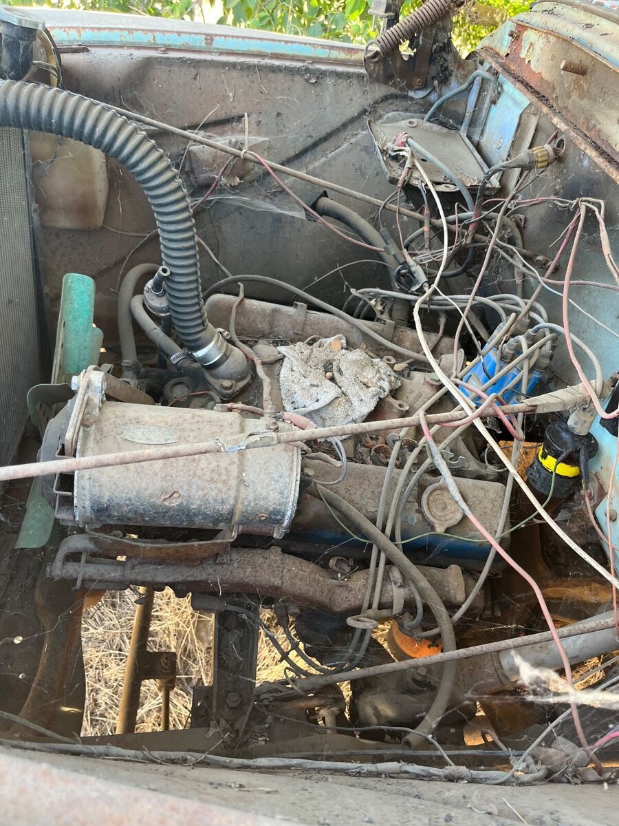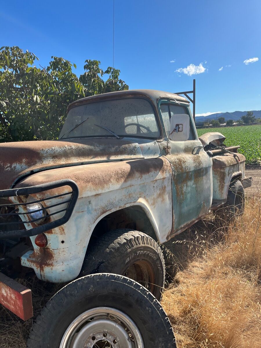 1956 GMC 1/2 ton with 3/4 ton running gear that hasn’t been registered or used since 1991 black and yellow California plates built in Oakland California and resided in the Santa Cruz mountains all its life . Truck has the original V8 motor and turns freely by hand and all running gear is intact .I have a rebuilt Carter carb for it as well and seat frame assembly and GMC hood insert. Please call for details. Pretty nice condition for the year. I decoded the VIN and it shows a 1/2 ton truck from the factory but has 3/4 ton running gear. I’m not going to venture to say what actually transpired with the truck in the last 69 years so what you see is what you get. It appears that if a 4 wheel drive conversion was done by an individual rather than the factory they did an amazing job.Truck has a bunch of potential and rust around the lower driver door . I have a grill and rear passenger fender that is straight.831-801-7759