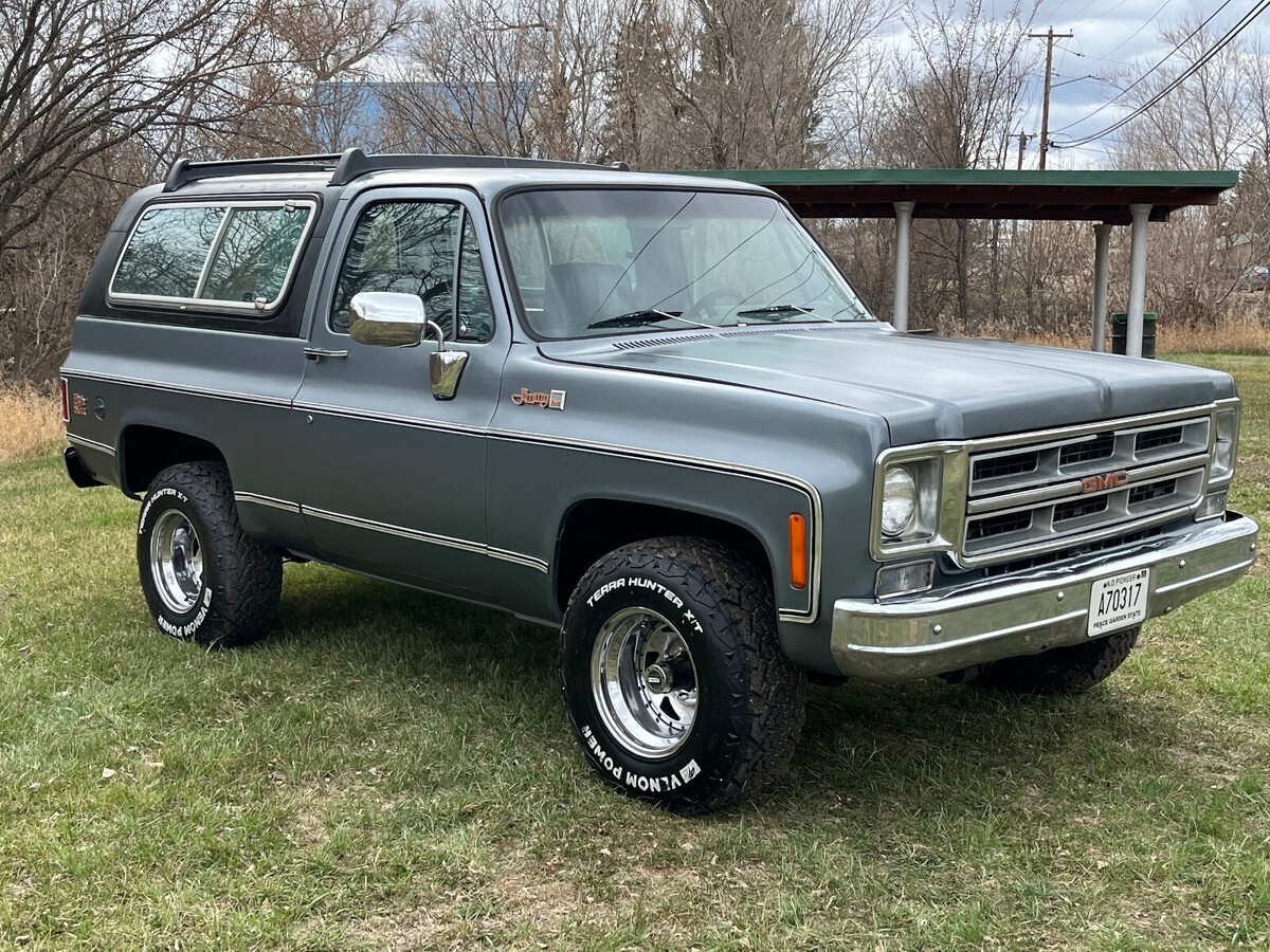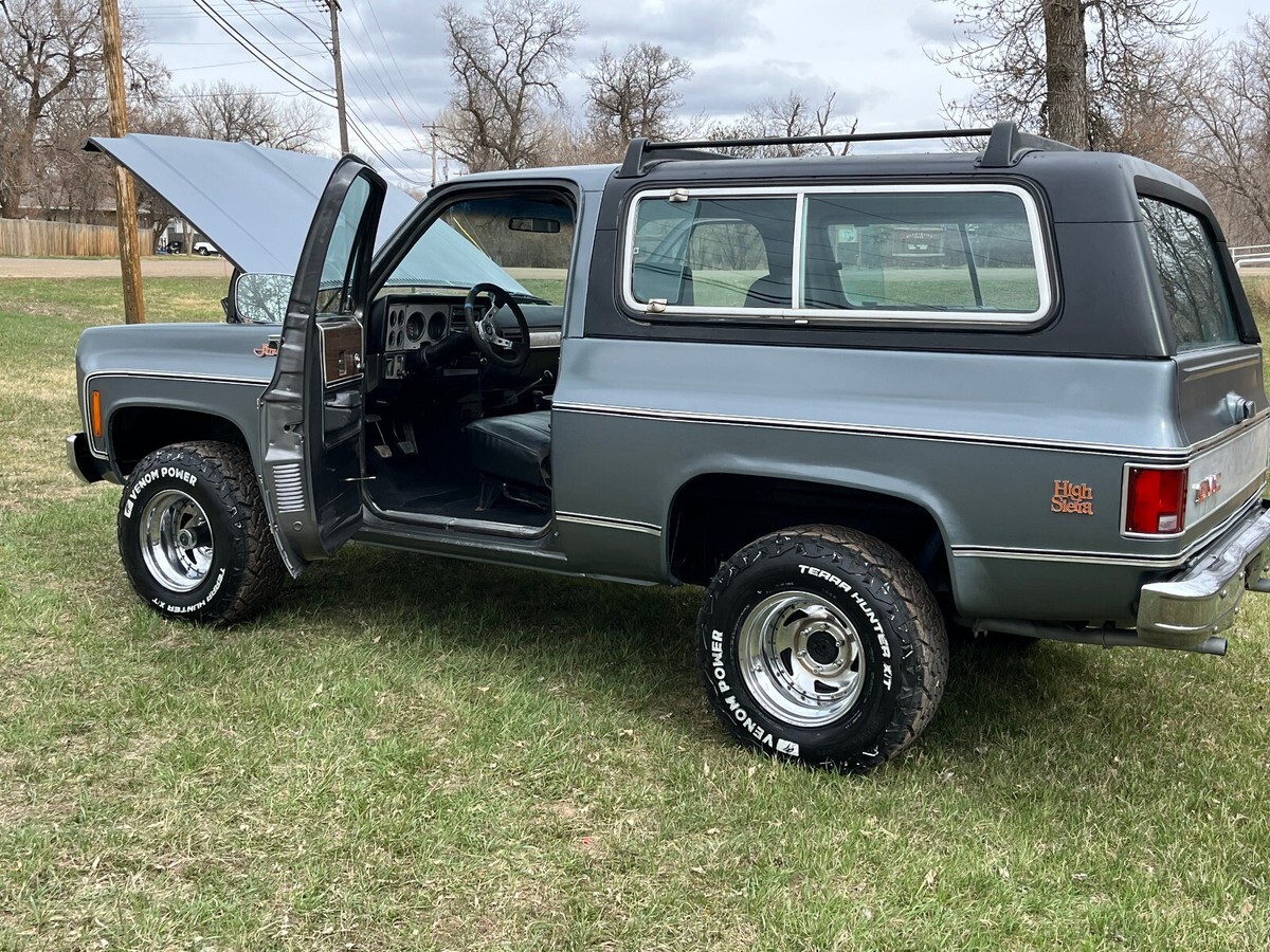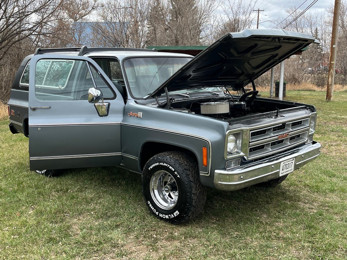 1976 GMC Jimmy 4wd High Sierra K5 with original drivetrain rebuilt engine numbers matching 350ci with RV cam it's an older restoration but still looks in great shape for its age no rust anywhere. All original gauges work though the speedometer is off by about 15mph with 31 inch tires its suspension is all original never messed with, It's an older restoration but still in great shape, I have owned it less than a year and its always ran great, stereo works. Starts and runs great doesn't drop or use oil, after a google search I see only 630 Jimmy High Sierras were built with a v8 and only a small fraction had factory 4 speed with ac, could've been only a hundred of those so rare plus has the original slider glass on topper and the rare roof rack. It's a turn key and drive anywhere vehicle with newer 31x10-15 tires and 15x10 chrome wheels, suspension has never been altered like most similar models you'll see on here. Beautiful interior seats slide and flip forward easily, clear title in my name. Also have the original steering wheel which is included. All blinkers brake lights running lights and headlights work correctly power steering power brakes work perfect. Drive shafts both tight and no play 4wd works great hi/lo easy to shift you do have to get out and switch the hubs to lock to switch to 4wd and they both spin easily and lock properly. Has dual exhaust runs all the way out the back that has no leaks and sounds great has ac but will need parts to get it working. Brakes work like new it's super safe and dependable. All seat belts work correctly both visors are there and fold correctly both shifters shift easily and clutch is strong and works perfect. The wipers work perfec, no chips or cracks in any glass and can see clearly out of all of them. I think the starting price is really low compared to similar Jimmys but I know shipping will be expensive to some locations now days so I put a best offer option to offset shipping cost for you so if you plan on shipping and would like to make a lower offer email me first and if we agree on a price I can change the buy it now price I accept paypal, bank wire transfers personal money order and cash in hand but any payment will have to clear before you set up shipping (buyer responsible for all shipping) a $300.00 non refundable deposit due when you buy it the remainder due within 7 days of auction ending, once payment received I will send the signed title 2 day priority to you. It is a 49 year old vehicle sold as is with manual transmission and no air bags or creature comforts so probably better suited for someone that knows about classic vehicles or grew up around them.Driving Videos:https://youtu.be/CGpixNUz4YYhttps://youtu.be/Q2KI2e_AdVQ Engine Running:https://youtu.be/qlTEkm6BNLc