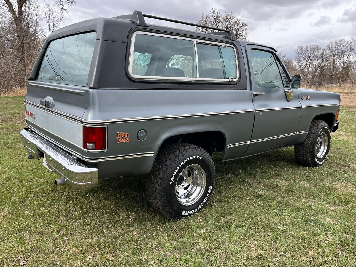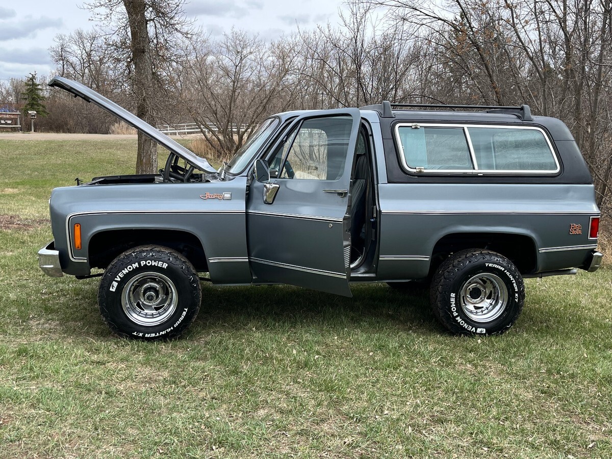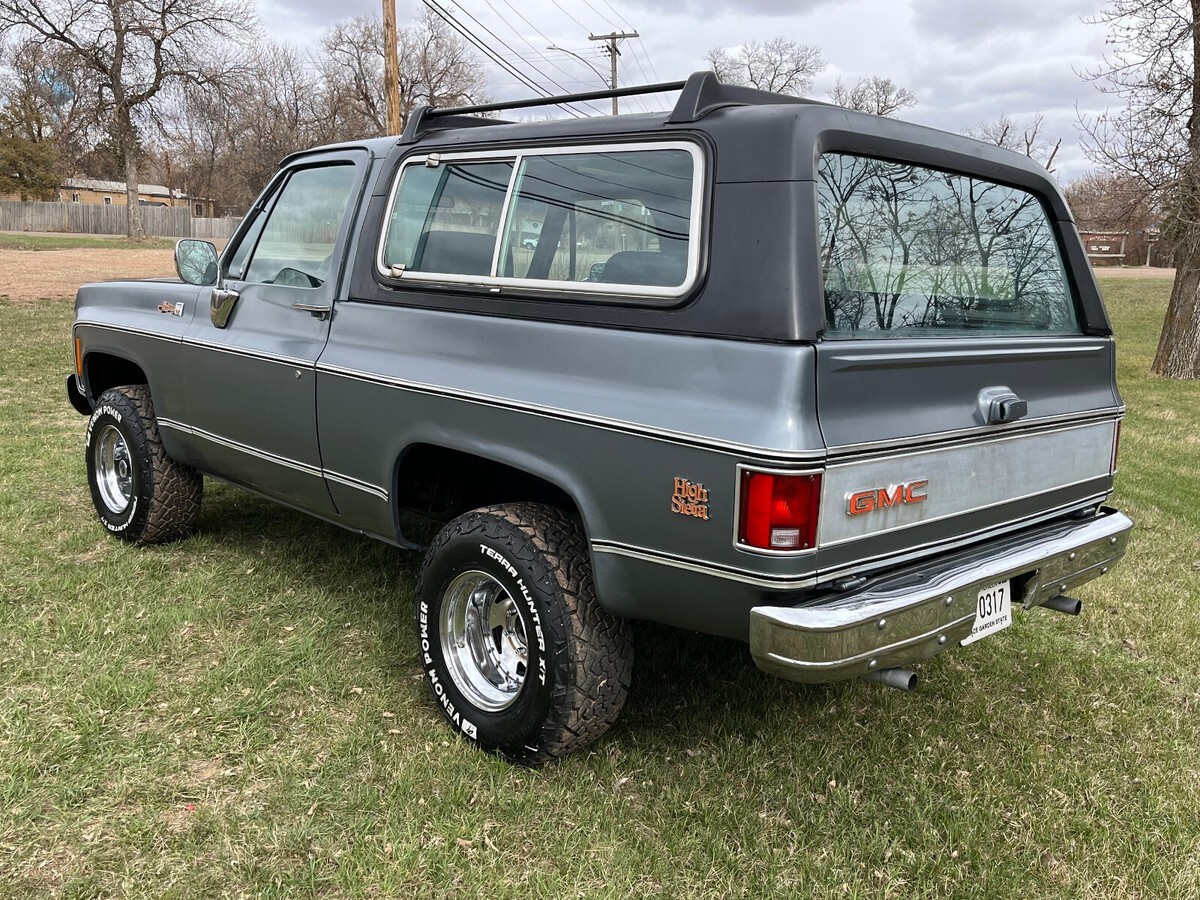 1976 GMC Jimmy 4wd High Sierra K5 with original drivetrain rebuilt engine numbers matching 350ci with RV cam it's an older restoration but still looks in great shape for its age no rust anywhere. All original gauges work though the speedometer is off by about 15mph with 31 inch tires its suspension is all original never messed with, It's an older restoration but still in great shape, I have owned it less than a year and its always ran great, stereo works. Starts and runs great doesn't drop or use oil, after a google search I see only 630 Jimmy High Sierras were built with a v8 and only a small fraction had factory 4 speed with ac, could've been only a hundred of those so rare plus has the original slider glass on topper and the rare roof rack. It's a turn key and drive anywhere vehicle with newer 31x10-15 tires and 15x10 chrome wheels, suspension has never been altered like most similar models you'll see on here. Beautiful interior seats slide and flip forward easily, clear title in my name. Also have the original steering wheel which is included. All blinkers brake lights running lights and headlights work correctly power steering power brakes work perfect. Drive shafts both tight and no play 4wd works great hi/lo easy to shift you do have to get out and switch the hubs to lock to switch to 4wd and they both spin easily and lock properly. Has dual exhaust runs all the way out the back that has no leaks and sounds great has ac but will need parts to get it working. Brakes work like new it's super safe and dependable. All seat belts work correctly both visors are there and fold correctly both shifters shift easily and clutch is strong and works perfect. The wipers work perfec, no chips or cracks in any glass and can see clearly out of all of them. I think the starting price is really low compared to similar Jimmys but I know shipping will be expensive to some locations now days so I put a best offer option to offset shipping cost for you so if you plan on shipping and would like to make a lower offer email me first and if we agree on a price I can change the buy it now price I accept paypal, bank wire transfers personal money order and cash in hand but any payment will have to clear before you set up shipping (buyer responsible for all shipping) a $300.00 non refundable deposit due when you buy it the remainder due within 7 days of auction ending, once payment received I will send the signed title 2 day priority to you. It is a 49 year old vehicle sold as is with manual transmission and no air bags or creature comforts so probably better suited for someone that knows about classic vehicles or grew up around them.Driving Videos:https://youtu.be/CGpixNUz4YYhttps://youtu.be/Q2KI2e_AdVQ Engine Running:https://youtu.be/qlTEkm6BNLc