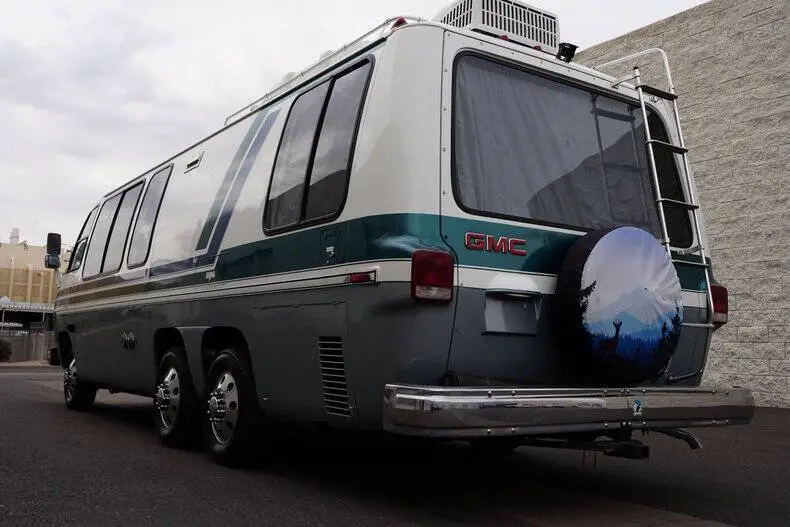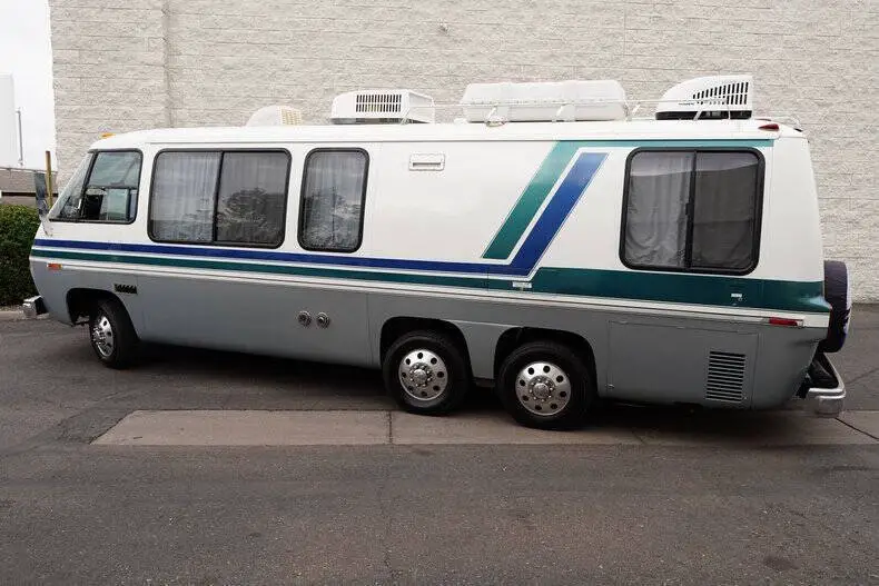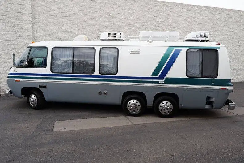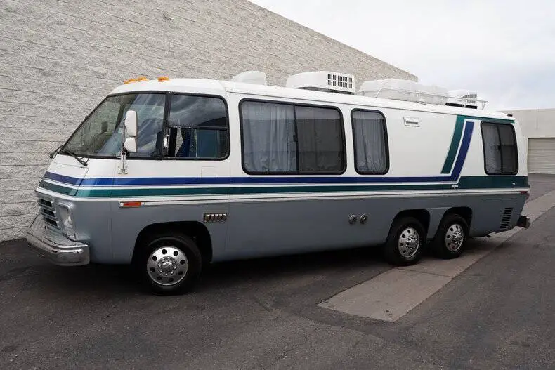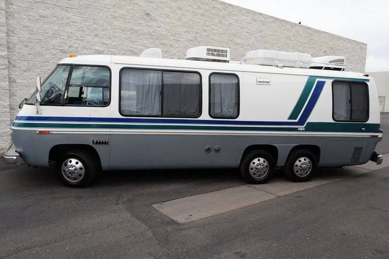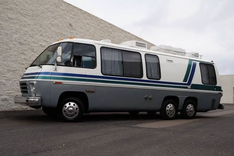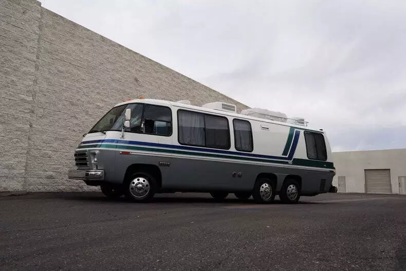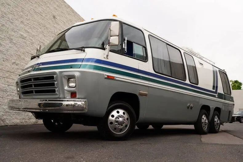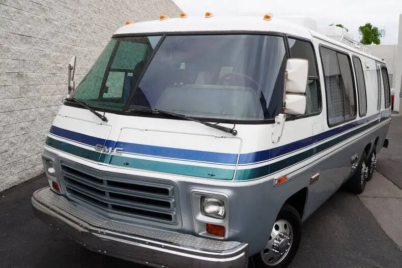 Classic Car Addict is excited to present this awesome 1977 GMC Eleganza II 26-foot motorhome for sale in our Mesa, Arizona showroom. GM made these comfortable and distinctive motorhomes for five years only, from 1973 to 1978 -- an innovative front-wheel-drive configuration allowed for a low and flat deck (which makes for very gracious living accommodations). And it's still the only recreational vehicle of this size made before or since by a major automobile manufacturer. The interior was recently upgraded with new floors, window seals, interior panels, new curtains, updated lighting, and was fully reupholstered by Anthony's upholstery shop in Chandler, Arizona. The kitchen has a new faucet, and the bathroom has a new toilet as well as a new showerhead. All overhead compartments were all rebuilt and are like new. The consignor also added a rear AC unit and all new batteries. They also installed a RetroSound Bluetooth stereo and rearview camera. The exterior is also in really great shape! The one is finished in Beige with teal and blue accents throughout. There are a few little flaws, but no rust! The roof was recently sealed, all fuel lines replaced, waste tank replaced, brakes inspected, sensors and monitoring station replaced all at Gene's RV in Mesa, Arizona. All exterior marker lights were also replaced as well. The motorhome is powered by a 403 ci V8 mated to an automatic transmission. The engine was just rebuilt by S&J Engines in Spokane. They also installed a rebuilt carburetor and new ignition parts. It has a new torque converter, new batteries, and replaced the air pump. Golby Motors also installed new drive axles. It rides on seven new tires, had a complete brake job done by Roberts Tire and all steering components were changed (tie rods, ball joints, drag links, control arm bushings, etc). This is essentially a brand-new motorhome with a vintage look, call Classic Car Addict today with any questions,480-256-1459. And please be sure to watch the full walkaround and driving video linked directly to our YouTube channel under Classic Car Addicts. We are a Classic Car company that combines a lifelong passion for classic cars with a level of customer service that thinks of you first. A company small enough to allow a personal relationship but a company with global expertise to deliver all your needs.