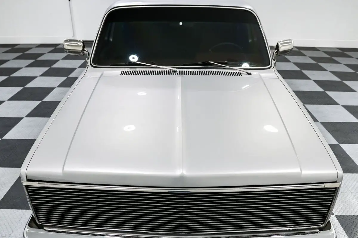 Inside, the custom red interior features bucket seats with a center console and modern Dakota Digital gauges for a refined and updated look. An aftermarket sound system with a subwoofer and kick panel speakers provides premium audio quality, while the comfort grip steering wheel and billet grill add polished details that elevate the driving experience. Air conditioning ensures comfort on warm days, while tinted windows offer added style and privacy.