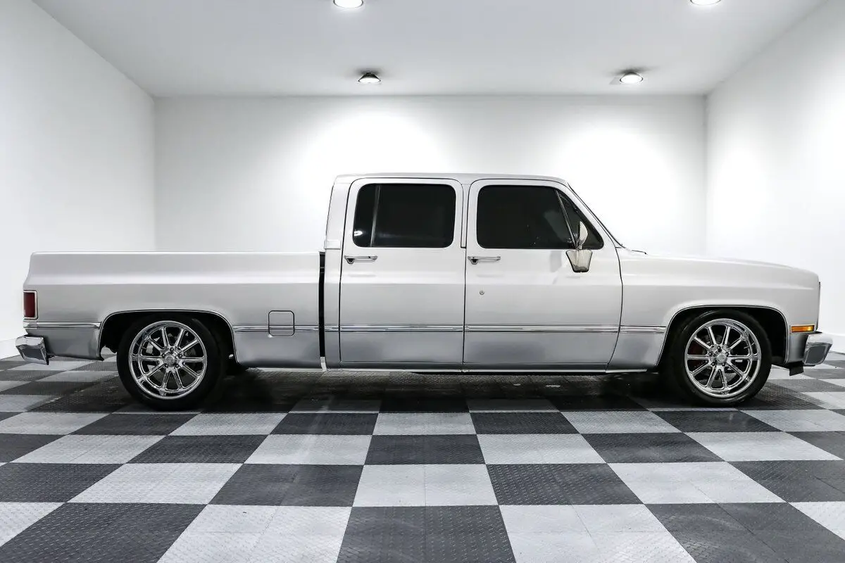 Give us a call at903-891-0000 with any questions! Financing and shipping available! This 1988 GMC Sierra Crew Cab custom pickup is a unique blend of modern performance and classic style, making it a standout truck for enthusiasts who appreciate individuality. With its sleek silver exterior and a striking red cloth interior, this one-of-a-kind custom conversion turns heads wherever it goes. Designed as a half-ton short bed, it combines utility with an unmistakable custom flair. Under the hood, a 5.3L LS V8 paired with a 4L60E automatic overdrive transmission provides smooth and reliable performance. The stainless steel long tube headers, dual exhaust, and dual electric fans ensure this LS swap runs cool and sounds strong. Power steering, power brakes, and a lowered suspension with a C-notched rear deliver sharp handling and a comfortable ride, whether you're cruising the boulevard or hitting the open road. Inside, the custom red interior features bucket seats with a center console and modern Dakota Digital gauges for a refined and updated look. An aftermarket sound system with a subwoofer and kick panel speakers provides premium audio quality, while the comfort grip steering wheel and billet grill add polished details that elevate the driving experience. Air conditioning ensures comfort on warm days, while tinted windows offer added style and privacy. This Sierra rides on 20-inch US Mags wheels, perfectly complementing the lowered stance and custom bedliner for a clean, finished look. The dual fuel tanks add practicality, making it a versatile truck that doesn't compromise on capability. With its combination of vintage charm and modern upgrades, this build bridges the gap between classic design and contemporary performance. Whether you're a collector or someone who craves a unique custom truck, this 1988 GMC Sierra Crew Cab custom is built to impress. Its rare configuration, modern enhancements, and attention to detail make it a truck that's as functional as it is distinctive. VEHICLE OPTIONS: - Subwoofer Behind Seat - One Of a Kind Custom Conversion - Custom Half Ton Short Bed - Aftermarket Sound System with Subwoofer - Power Steering - Power Brakes - Dual Exhaust - Air Conditioning - Tinted Windows - Stainless Steel Long Tube Headers - LS Swap - Lowered Suspension - Kick Panels w/ Speakers - Dual Fuel Tanks - Dual Electric Fans - Dakota Digital Gauges - Comfort Grip Steering Wheel - C Notched Rear - Bucket Seats w/ Console - Billet Grill - Bedliner - 4 Wheel Disc Brakes - 20 Inch US Mags Wheels OPERATIONAL ASSESSMENT: Functioning: Yes/No Yes - Brake Lights Yes - Headlights Yes - Horn Yes - Radio Yes - Speedometer Yes - Tail Lights Yes - Turn Signals Yes - Air Conditioning Yes - Fuel Gauge Yes - Heater Yes - Oil Pressure Gauge Yes - Runs Yes - Tachometer Yes - Temperature Gauge Yes - Wipers