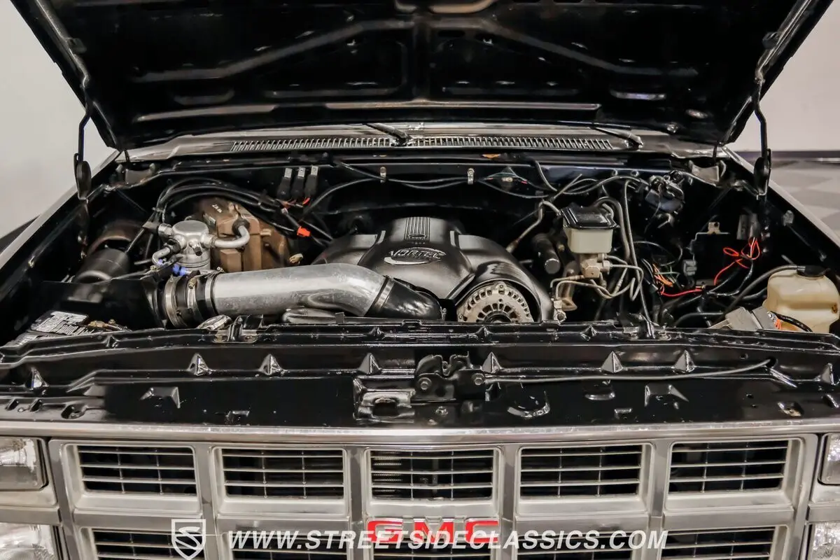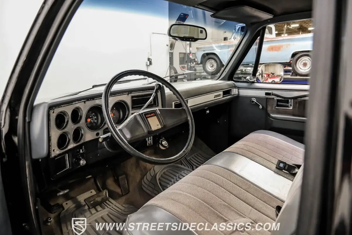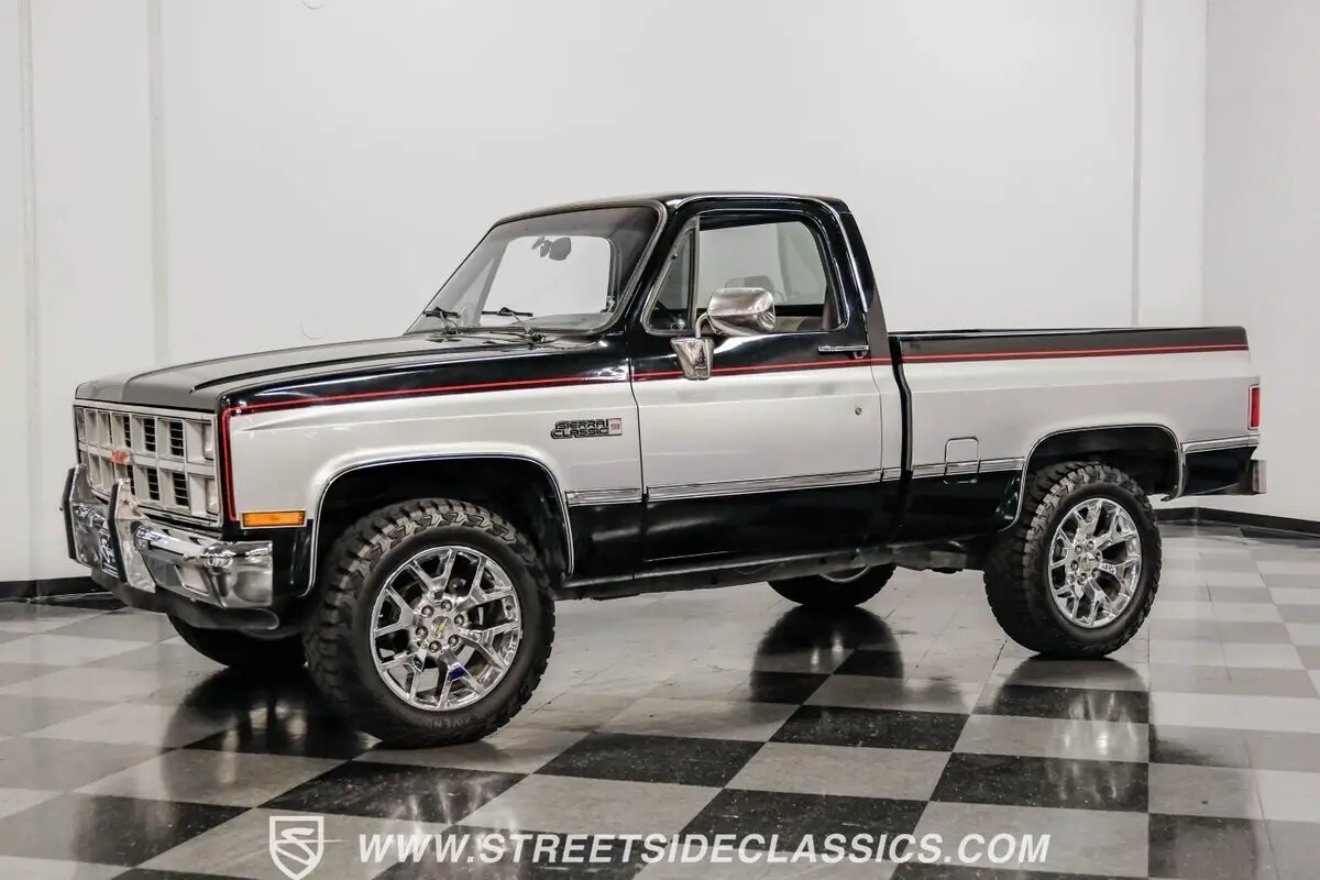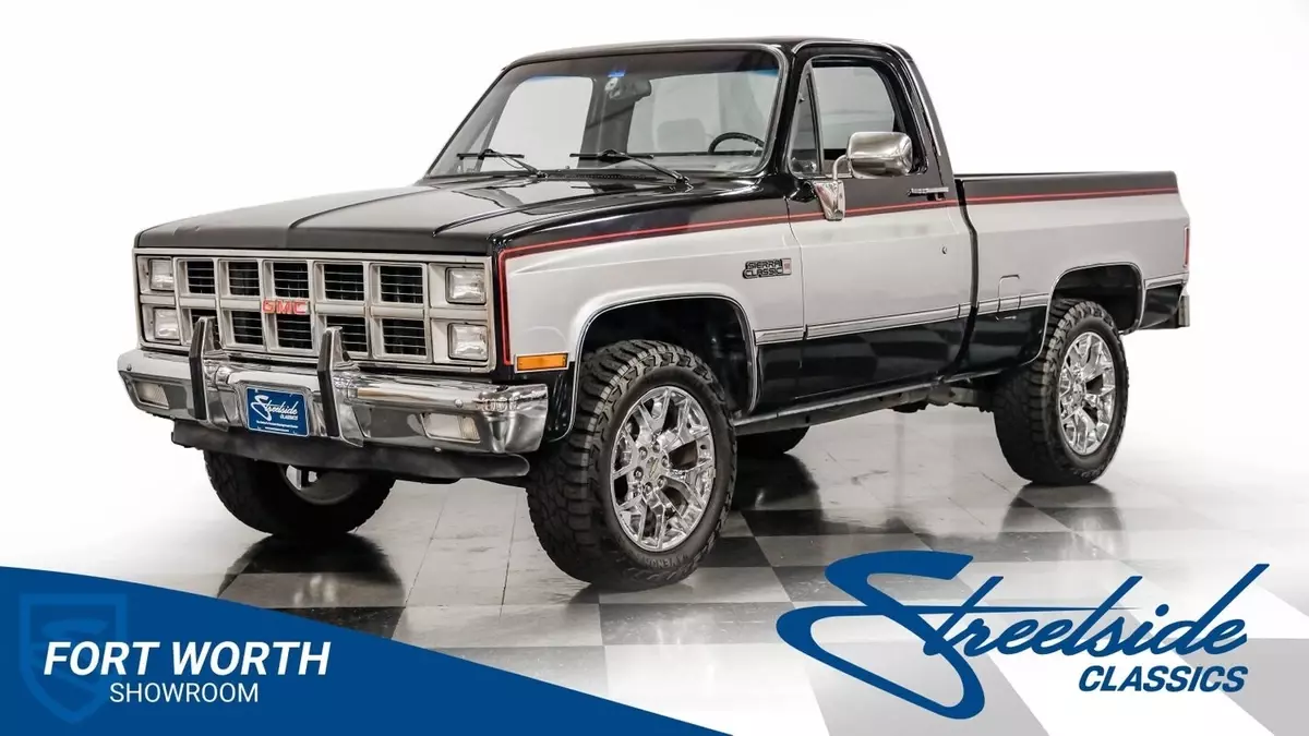 Modernized and modified for the ultimate performance upgrade, this 1982 GMC Sierra 1500 Classic Resto-Mod wears a sleek black and silver finish accented by red painted pin stripes. The exterior overhaul features chrome bumpers and GMC tailgate trim that perfectly complement the polished 20" wheels. The muscular stance is amplified by 285/60R20 Venom tires with plenty of tread life and a custom touch places the fuel filler in the back left corner of the bed. The gray interior offers a blend of comfort and utility with its vinyl and cloth bench seat. Stock GMC elements include the tilt steering wheel and classic dash layout. An aftermarket Planet Audio AM/FM/CD player with USB and auxiliary input provides entertainment options. Gray cloth headliner and matching carpet maintain the factory-inspired look while adding modern convenience to this pickup's cabin. Mechanical prowess defines this Sierra with a chassis and drivetrain transplanted from a 2004 Cadillac Escalade with AWD. It features a 6.0L LS V8 Vortec engine with electronic fuel injection and a rebuilt-in-2023 4L60E 4-speed automatic transmission. Dual exhaust with FlowMaster mufflers creates an impressive sound while twin electric cooling fans keep temperatures in check. HIGHLIGHTS: • 6.0L LS V8 Vortec Engine • 4-Speed Automatic Transmission (4L60E - rebuilt in 2023) • Electronic Fuel Injection • AWD Drivetrain • Power Disc Brakes • Power Steering • FlowMaster Dual Exhaust • 20" Wheels with 285/60R20 Venom Tires • Fuel Fill Relocated to Bed • Gray Interior with Bench Seat • Tilt Steering Wheel • AM/FM/CD Player with USB/Aux This 1982 GMC Sierra 1500 Classic Resto-Mod combines vintage truck appeal with modern performance. From its 6.0L LS V8 engine to its AWD drivetrain and stylish exterior, this pickup delivers both looks and capability for any truck enthusiast. Call today! *Please note this truck is being sold with a clear Texas title with the remarks: Rebuilt Salvage - Loss Unknown.