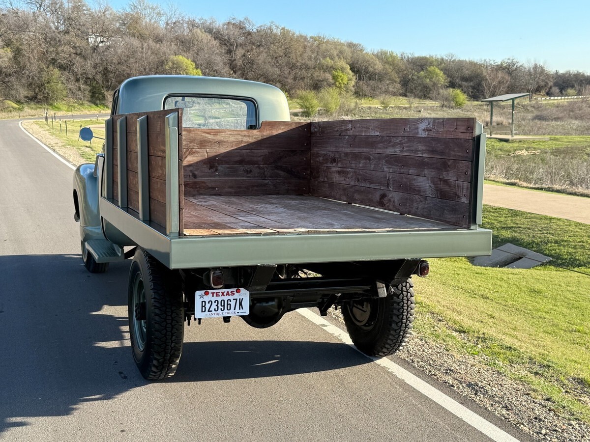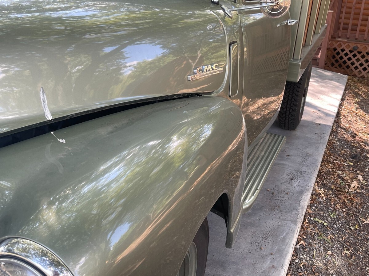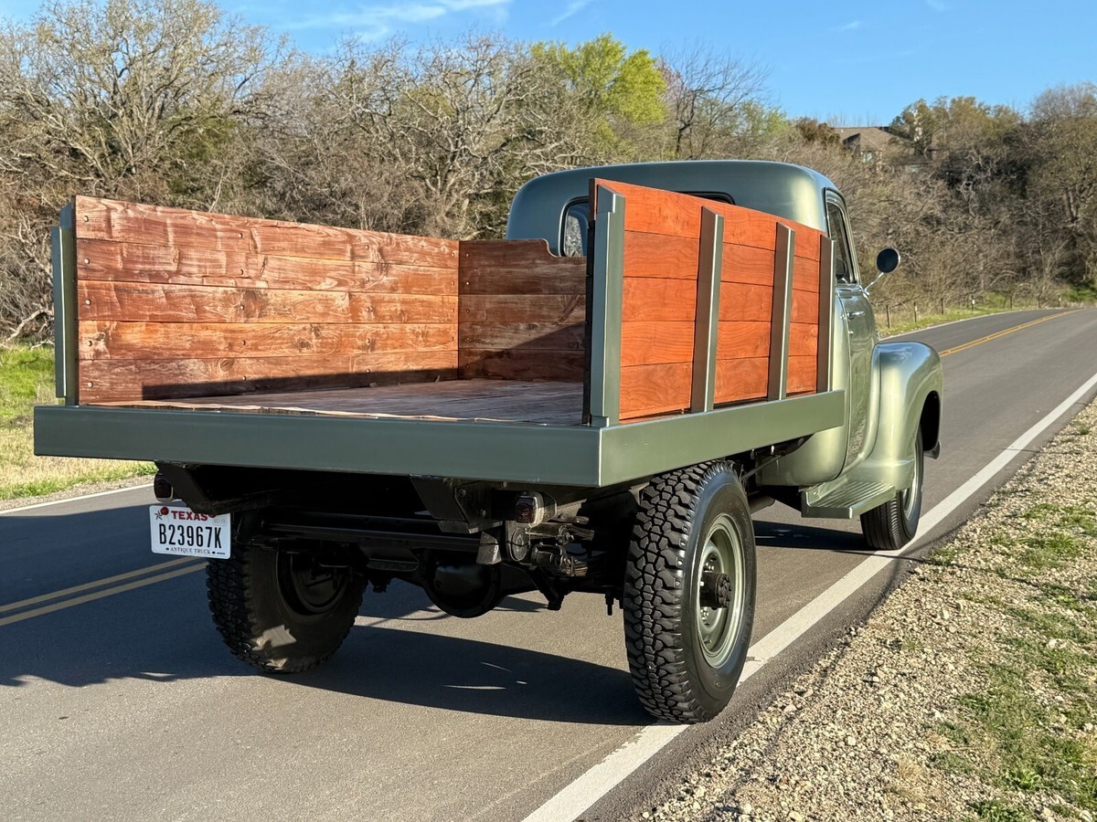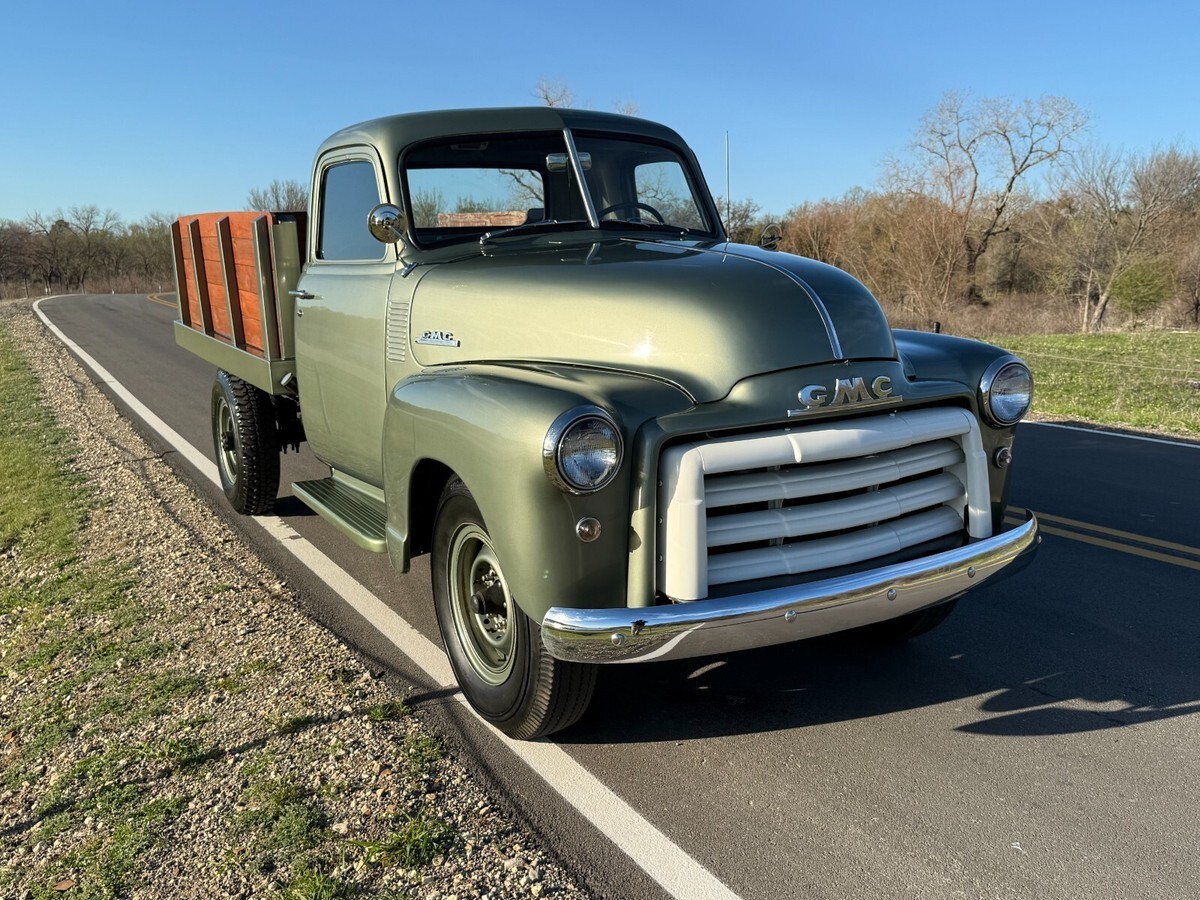 This 1947 GMC truck was refurbished and outfitted with a hydraulic tilting stake bed before being used as a display and hauling vehicle for a pecan farm in Texas. The cab and body are finished in metallic green, and stained wood planks line the bed floor and stake bed sides. Power is provided by a 228ci inline-six that has been outfitted with an Offenhauser intake manifold, dual Rochester carburetors, and Fenton cast iron headers and is linked to a three-speed manual transmission. Inside, the bench seat is trimmed in black vinyl and an aftermarket air conditioning system keeps the cab area ice cold, turn signal switch, and auxiliary gauges. Texas title in my name.Body-color 17″ steel eight-lug wheels are wrapped in 7.50-17 Tornel tires. Braking is handled by power-assisted drums, and the rear axle has auxiliary overload leaf springs.The bench seat is trimmed in black vinyl, and interior appointments include a locking glovebox, air conditioning, manual windows, and a body-color steel dashboardThe three-spoke steering wheel frames an 80-mph speedometer and auxiliary gauges for coolant temperature, fuel level, amperage, and oil pressure. Aftermarket gauges for voltage, coolant temperature, and oil pressure are mounted below the dash. The speedometer needle bounces upon startup until the vehicle is warmed up.The 228ci inline-six is said to have been rebuilt under prior ownership, and it is equipped with an Offenhauser intake manifold, dual Rochester carburetors, twin beehive-style air cleaners, and Fenton cast-iron exhaust headers. A modern-style 12-volt alternator is also installed.$25,000 Cash, Best offer or might trade. Don't ask me what I'm looking for, just send what you might want to trade.