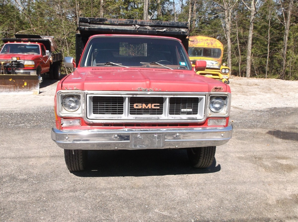 I have a 1974 GMC Dump 1 Ton 350 V8 3Spd. with an electric Dump body in way above average shape for the YR> This truck was restored about 20 YRS ago and she still has allot of life in her V8 Motor runs great!!! New carb truck has 6 New tires and more!!!! Real strong runner. The body is real good, floors rockers and frame are just way above average!!! The dump body is real solid works 100 % this would be a great work truck or restore for advertisement. Lots of truck here. Please email with all questions before bidding!!! Bid to own. NH reg in my name.Terms of sale; All payment arrangements MUST BE MADE within 24 Hrs. of sale. Transport of the vehicle is the buyer responsibility!!!