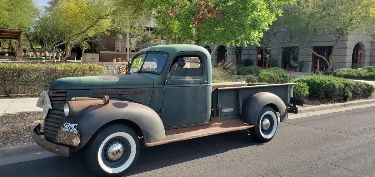 truck was produced after ww2. factory's were only for the war production, not available for public transportation, until the war was over in 1945. production was then started back up in early 1946 to mid 1946. this truck was made at the return of production at MI. factory Plant. when the assembly plants, returned and refitted to making public transportation into 1946 again. it is first year and return manufactured in mid June 1946. MI assembly plant. truck was parked in barn for 45 years parked. pulled from barns storage and worked on minor issues, for it to be up and running. serviced motor. cleaning carb, points, and plugs/wires. cleaned up all areas of truck, new upholstered Noahide tan seat. placed all new brake shoes, replaced running boards with exact type original replacements, a original set ..truck runs and drives well. stops as it should, no safety issues. and idles with out any overheating issues. truck is geared low. top speed 45-50. new headline, with all of its glass. all original factory provided trim, in 1946, all there and original. original heater. floors are not damaged and no rot or decay.Truck has original owners manual, original operators manual, and GMC original sales books, 1946 GMC repair service original manual, sales brochure, w, pictures of truck types to view before a purchase. original. Documentation facts for gmc 1946 trucks.shipping contact; we can address your delivery, with transporter, we use, if the area is of a route, that is used in their transportation delivery areas. provide . a city, zip code. for availability and rates..