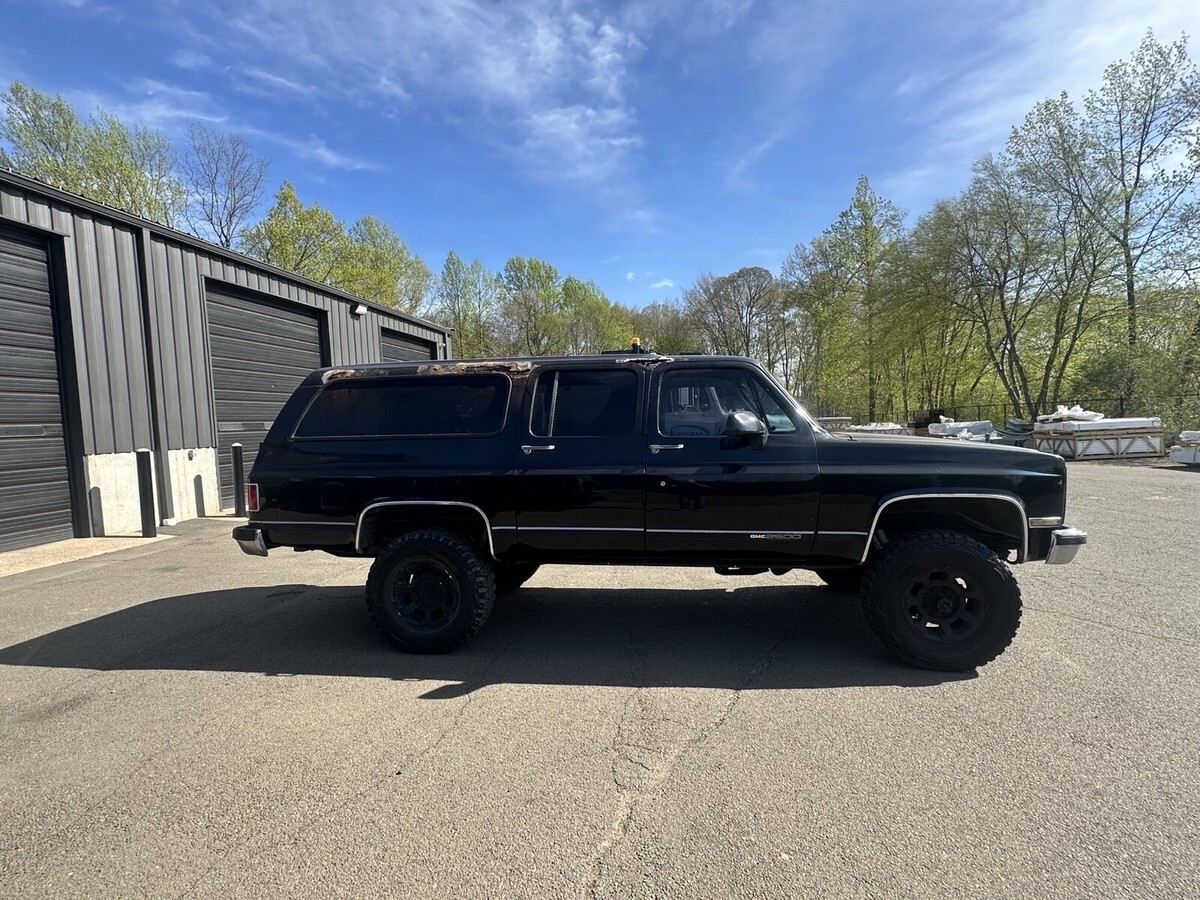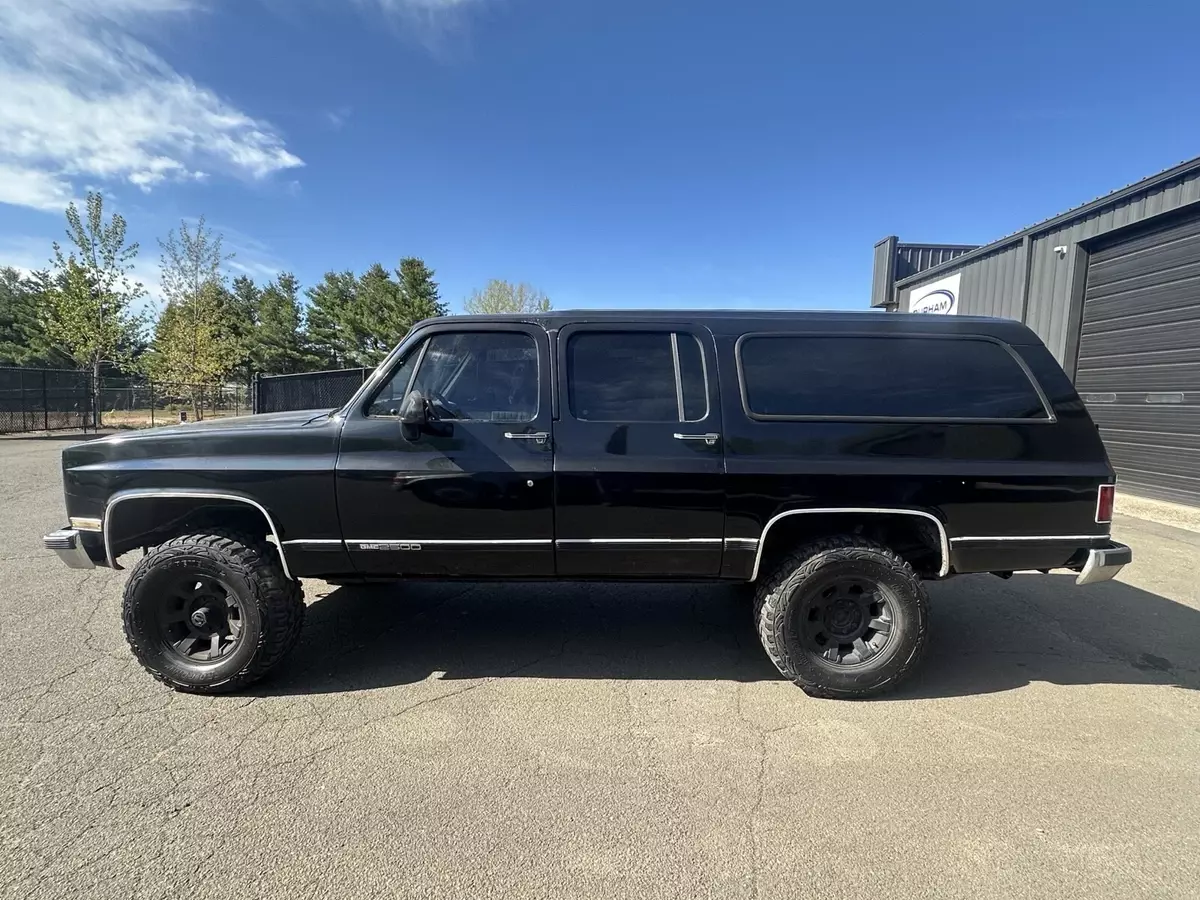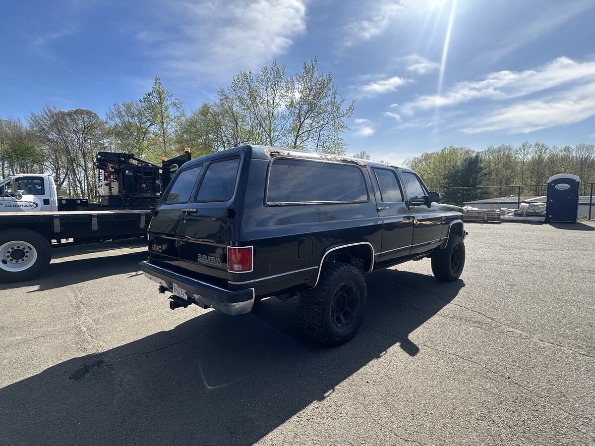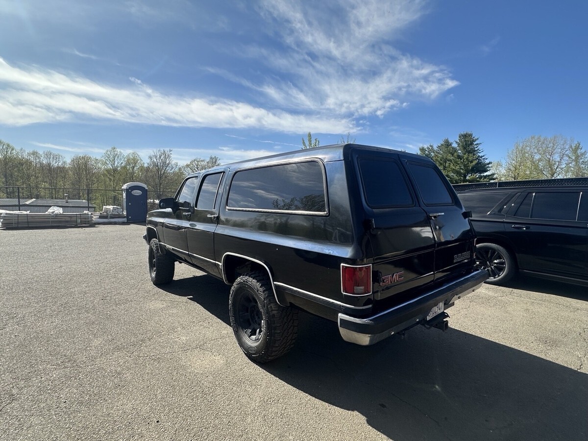 1990 GMC Suburban 2500 Fuel Injected 350 TBI Turbo 400 Transmission NP241 Transfer Case Clean Title California Truck with a Clean Rust Free Undercarriage Rust on Roof that will need Repair Runs and Drives Well 3” Lift Kit 35” Tires on Powdercoated H2 Hummer Wheels