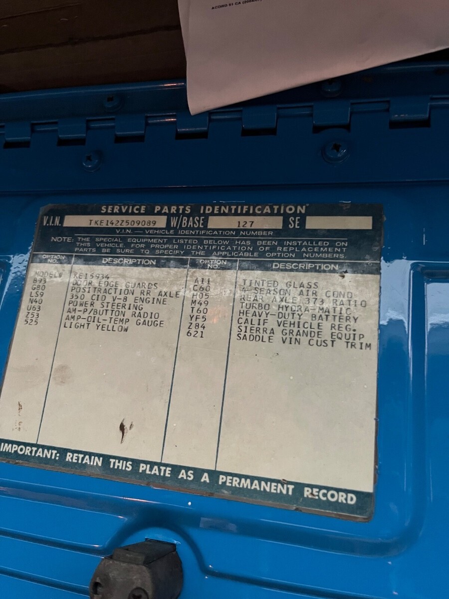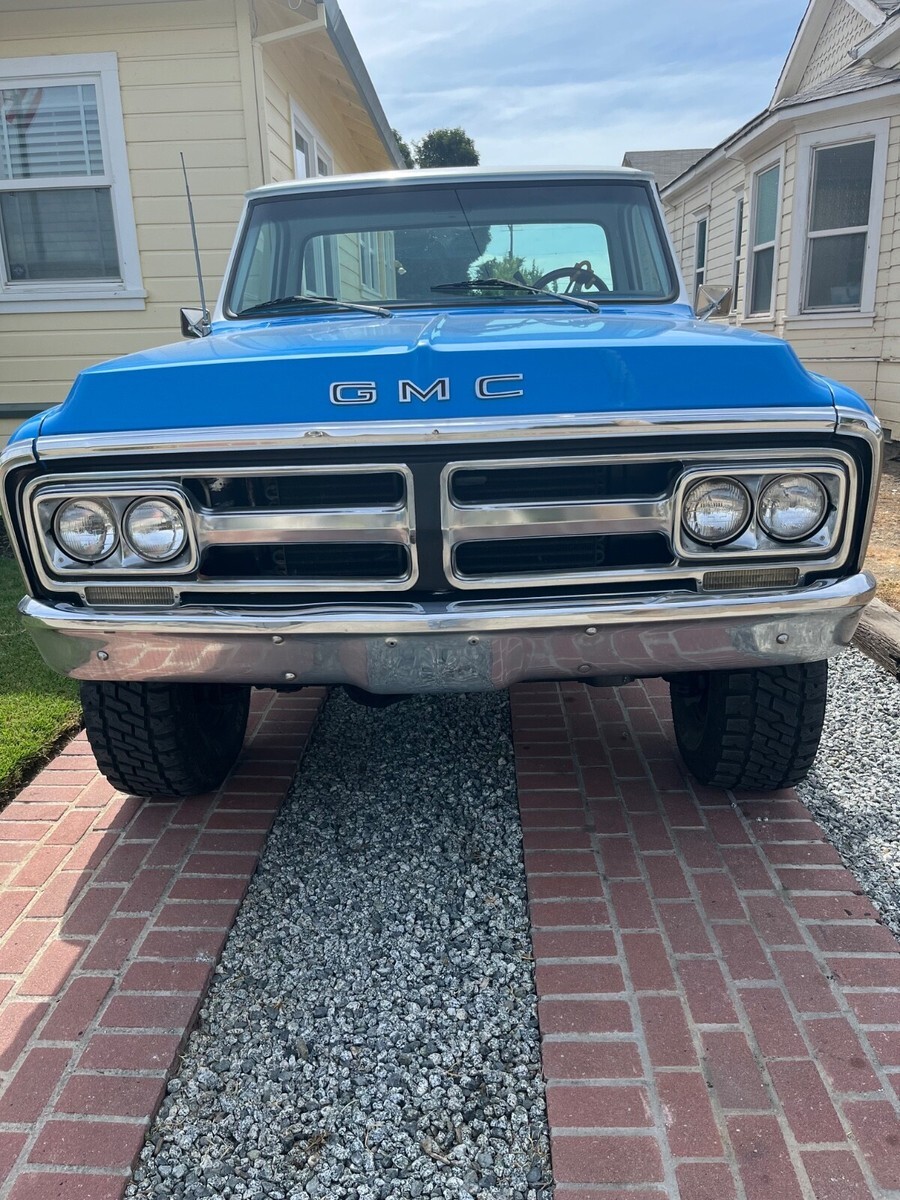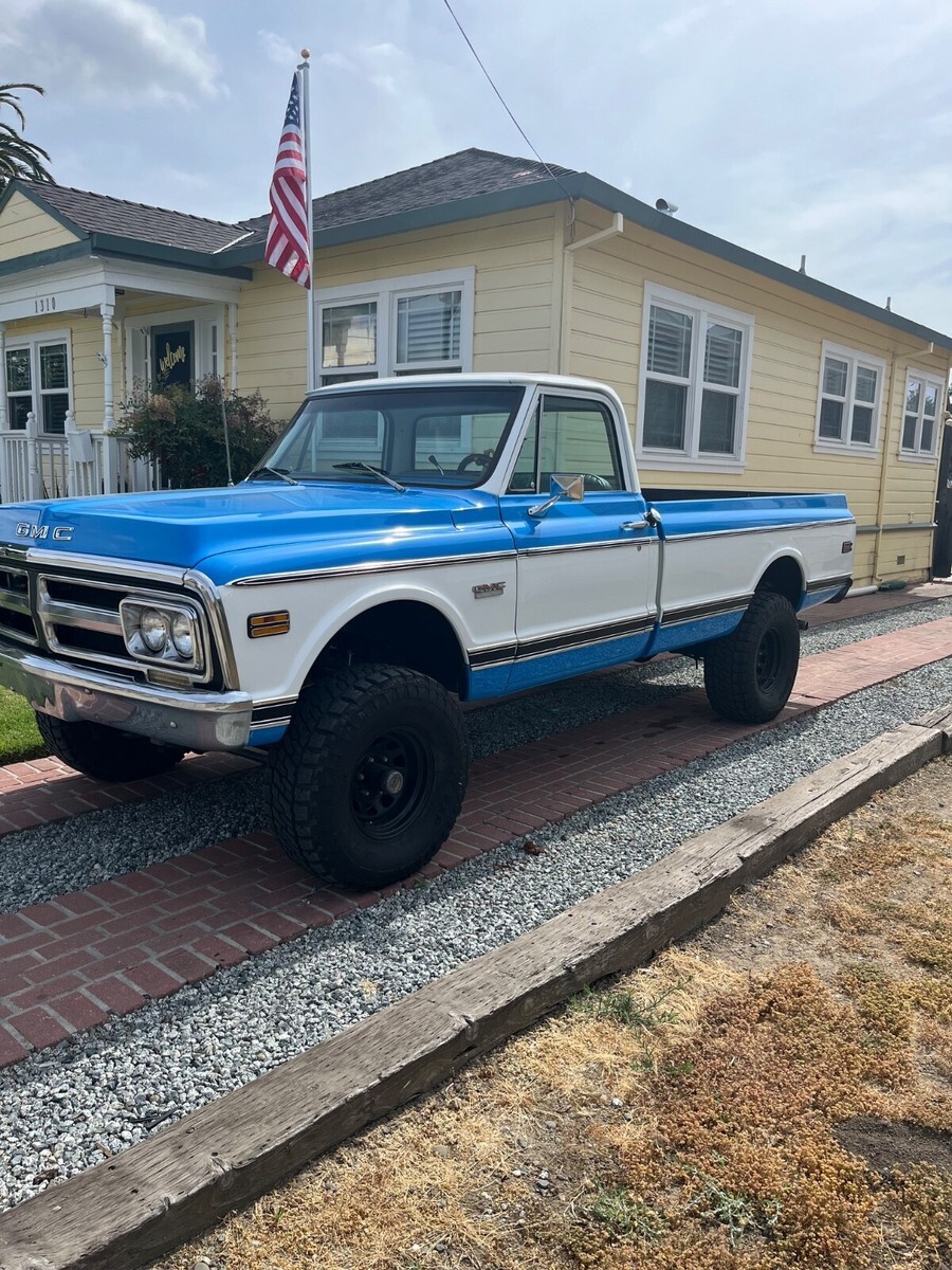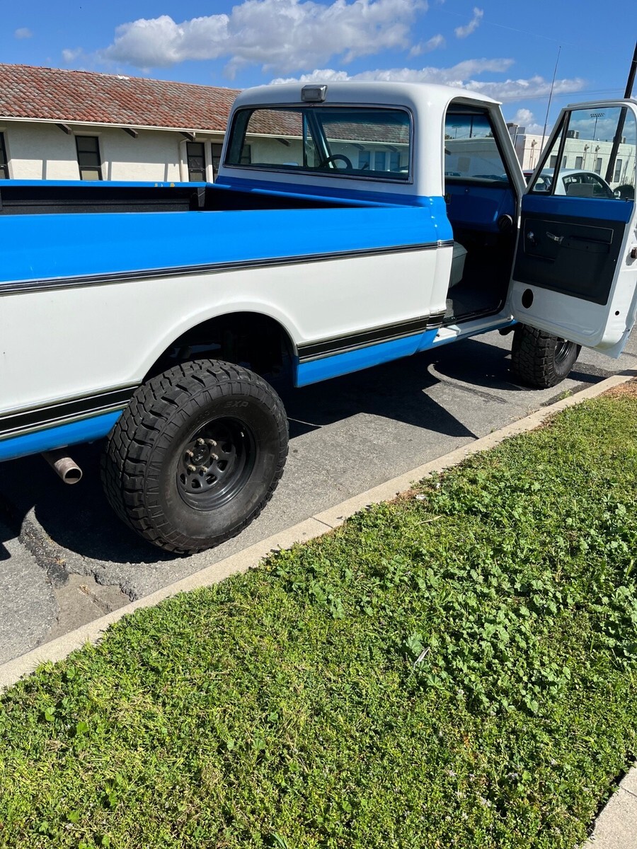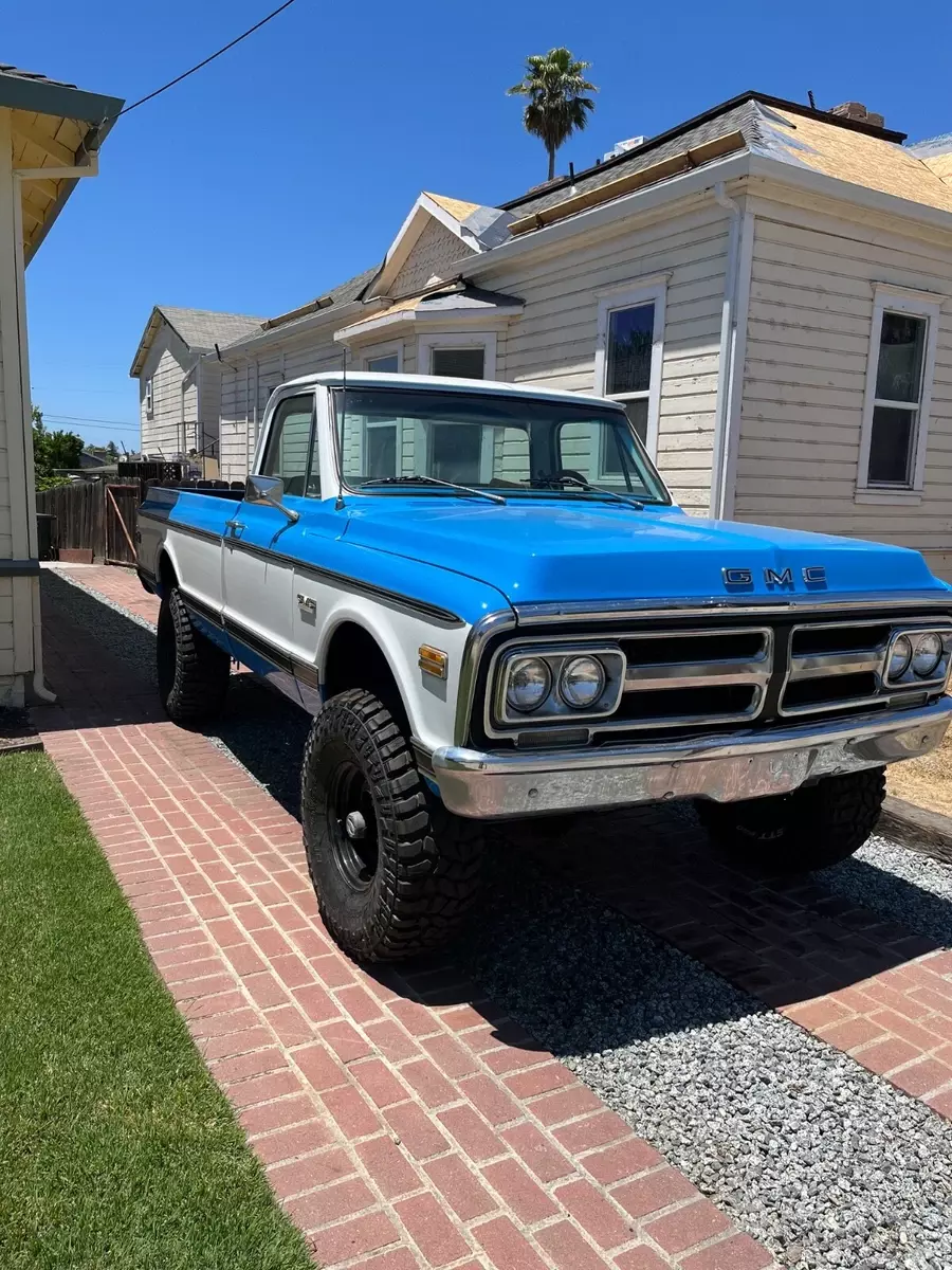 This an original California truck bought brand new here in Hollister California. It has the Sierra Grande package with working A/, disc brakes, power steering, power brakes and 12 bolt rear axle with 3:73 gears. I have all the sales documents and a huge folder of maintenance since new. Truck was originally yellow but opted to change her out in beautiful Hawaiian blue and white. The truck is outstanding and was restored 2 years ago with all new molding on the exterior, new grey interior and all mechanical components rebuilt 20,000 miles ago . I installed a 4” lif, new 35” Cooper mud terrains that looks fantastic no sag fully leveled. The motor is a mildly built 350 with a small cam and roller rocker, nothing to drastic and very reliable. This is a rust free truck, semi frame off restoration with all new polyurethane mounts throughout. I get thumbs up whenever I drive her. Call with any questions before bidding. 831-801-7759 ThanksThe only reason I am selling it or considering selling it is I have too many vehicles and restoring 2 more Chevys and a GMC that I am working on.Paint job alone on this truck was more than 15k.