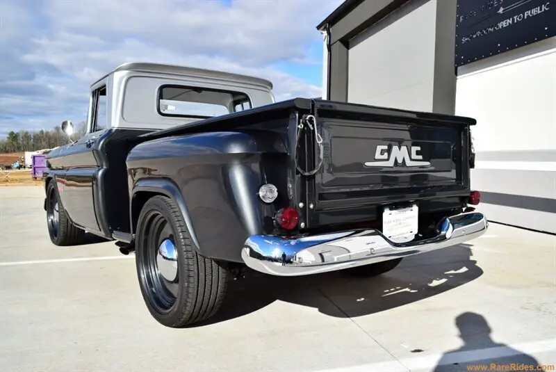HIGHLIGHTS:AC Delco/GM Genuine Parts Sponsored Restomod! Fully documented by builder and YouTuber Saabkyle04: watch?v=FJH3cZngHwg&t=336sBody: 1962 GMC C1000 (originally a long bed) on a 1974 Chevy C10 short bed chassisDrivetrain: 5.3L LM7 V8 from a 2004 Cadillac Escalade, tuned with Texas Speed Stage 2 camTransmission: 4L60-E automatic, performance-tuned for firm, smooth shiftsPaint: GM Son of A Gun Grey Metallic & Silver Ice Metallic, with custom stripingSuspension: Lowered with drop spindles and factory-style leaf springs with air shocksBrakes: Hydroboost braking system, heavy-duty front disc brakes, finned rear drumsInterior: Custom-trimmed with sound deadening, Vintage Air A/C, and modern techWheels: 22-inch Detroit Steel Wheels powder-coated to match, wrapped in Goodyear EaglesAudio: Boss Auto touchscreen infotainment, full custom speaker setup with subwooferFuel System: Custom Deatschwerks setup, relocated under-bed fuel tankBODY OVERVIEW:This build stays true to GMC's original aesthetic while adding just the right amount of modern refinement. The custom-fabricated grille, hood, and tailgate keep it uniquely GMC, while the handcrafted mounts and bodywork bring everything together seamlessly. If you appreciate classic styling done right, you'll love the attention to detail here. Even the firewall didn't remain untouched!PAINT CONDITION OVERVIEW:The Son of A Gun Grey Metallic & Silver Ice Metallic two-tone finish is flawless--deep, smooth, and rich with contrast. The striping and accents highlight the truck's aggressive stance without looking overdone. Whether parked or rolling down the street, it has show-stopping presence.INTERIOR CONDITION OVERVIEW:A blend of vintage charm and modern convenience, this truck's interior is comfortable, functional, and stylish. The TMI bench seat is adjustable, the Vintage Air A/C keeps things cool, and the full Boss audio system turns the cab into a rolling concert hall. Every switch, knob, and component has been either replaced or custom-built for smooth, factory-like operation.MECHANICAL OVERVIEW:This is no old-school slouch--it drives like a modern truck with 2004 Cadillac Escalade power under the hood. The 5.3L LM7 V8 is cammed and tuned to perfection, delivering effortless torque and a healthy exhaust note through custom side-exit pipes. The hydroboost braking system and power steering setup make it as easy to drive as a new truck, while the lowered suspension ensures a confident, planted ride. As a nod to classic hot-rodding, this thing sounds great through a set of dual glasspack mufflers! WHAT YOU'LL LOVE ABOUT THIS TRUCK:Classic looks, modern reliability - No chasing rare parts or seeking a specialty mechanic, everything is designed for easy maintenance.Comfortable & functional - A true daily-driver restomod with A/C, power steering, and a killer stereo!Perfect stance & handling - Sitting just right, with 22-inch Detroit Steel wheels for the ultimate look.Factory-style restomod - This truck was built in partnership with AC Delco and GM Genuine Parts to retain as many GM-branded parts and pieces as possible!WHAT YOU MIGHT HATE ABOUT THIS TRUCK:This truck is a far cry from an original - If you're a numbers-matching purist, this isn't for you.Single side mirror - It keeps the original aesthetic, but some may prefer a passenger-side mirror.DOES IT NEED ANYTHING?Nope--this truck is turn-key and ready to go! All the mechanicals, electricals, and cosmetics are fully sorted and this truck has done over 1,200 miles of testing!WHAT BUYER IS LOOKING FOR THIS TRUCK?This is for the enthusiast who loves classic trucks but doesn't want to deal with carburetors, weak brakes, or stiff steering. If you want a timeless look with modern performance and reliability, this GMC restomod is the perfect fit.MODIFICATION/REPAIR LIST: Rust Repair:Inner and outer rockersFloor pan sectionsCab cornersLower doorsHood Modification:Original GMC front section was separate, requiring custom fabricationCustom welded and blended for a seamless transitionAssist springs for smoother lifting and loweringCustom insulation concealed by form-fitting plastic panelsPaint & Design:Primary Colors: GM Son of A Gun Grey Metallic & Silver Ice MetallicAccents: Hood, grille, tailgate, roof, and stripingExterior Details:Retained single driver-side mirror for period correctness and aestheticsCorrect GMC stamped tailgateWood bed floorWheels & Tires:22x9-inch Detroit Steel Wheels, powder-coated to match body colorWrapped in 275/40 Goodyear Eagle Touring all-season tiresBaby moon center capsChassis & Frame:1974 Chevrolet C10 chassis with numerous upgrades and modificationsLadder-type frame with a drop-center design for better cab mountingCustom cab mounting using a combination of '62 and '74 mountsHand-fabricated bed mounts and front bumper mountsStrengthened with Tin Works Fabrication crossmembers and Holley transmission crossmemberAdditional boxed front frame brace and gusseted x-brace over the rear axleSuspension:Independent front suspension with coil springs and double A-armsLowered ride height with drop spindles and lowering springsShock relocation perch welded on for factory-style shocksRear suspension uses a flip kit to retain factory leaf springsAC Delco adjustable rear air shocks with a Schrader valve for suspension tuningBrakes:Heavy-duty front disc brake upgrade with oversized ventilated rotorsSingle-piston calipers in the front11-inch finned rear drum brakesHybrid mechanical parking brake using a mix of '62 and '74 componentsHydroboost braking system sourced from the 2004 Escalade'74-style master cylinder Steering:1974 power steering gearbox Modified Escalade power steering lines with custom return linesAdded power steering cooler for hydroboost systemFlaming River adjustable tilt steering columnFactory steering wheel adapted with a custom turn signal cancellerUpgraded Powertrain:5.3L LM7 V8 from a 2004 2WD Escalade (295 hp, 330 lb-ft torque)Engine fully refreshed with AC Delco and GM 
