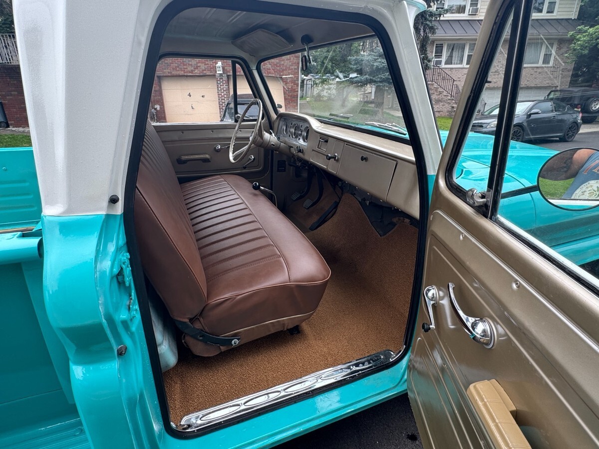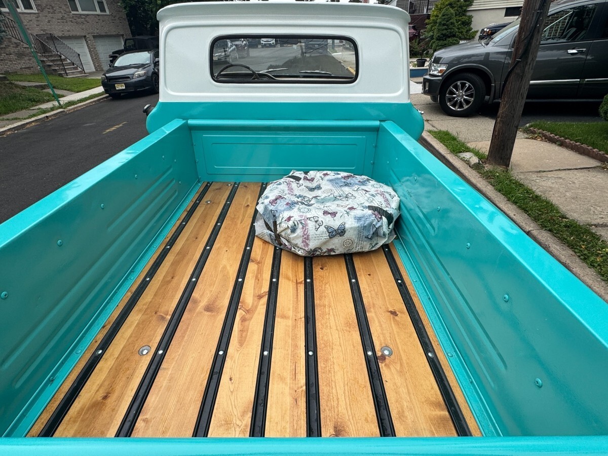 1965 GMC original V6 with a 3 speed manual which is now on the floor. The original v6 runs really good. This is an older restoration which was done by a amateurly. Drive it or give it a restoration. The truck is sold as is with no warranty or guarantee. If you would like to come see the truck just let me know and questions please ask, Low reserve thanks and good luck Paste and copy to see a videohttps://youtu.be/3BLKYdxp6sc will work with your shipper