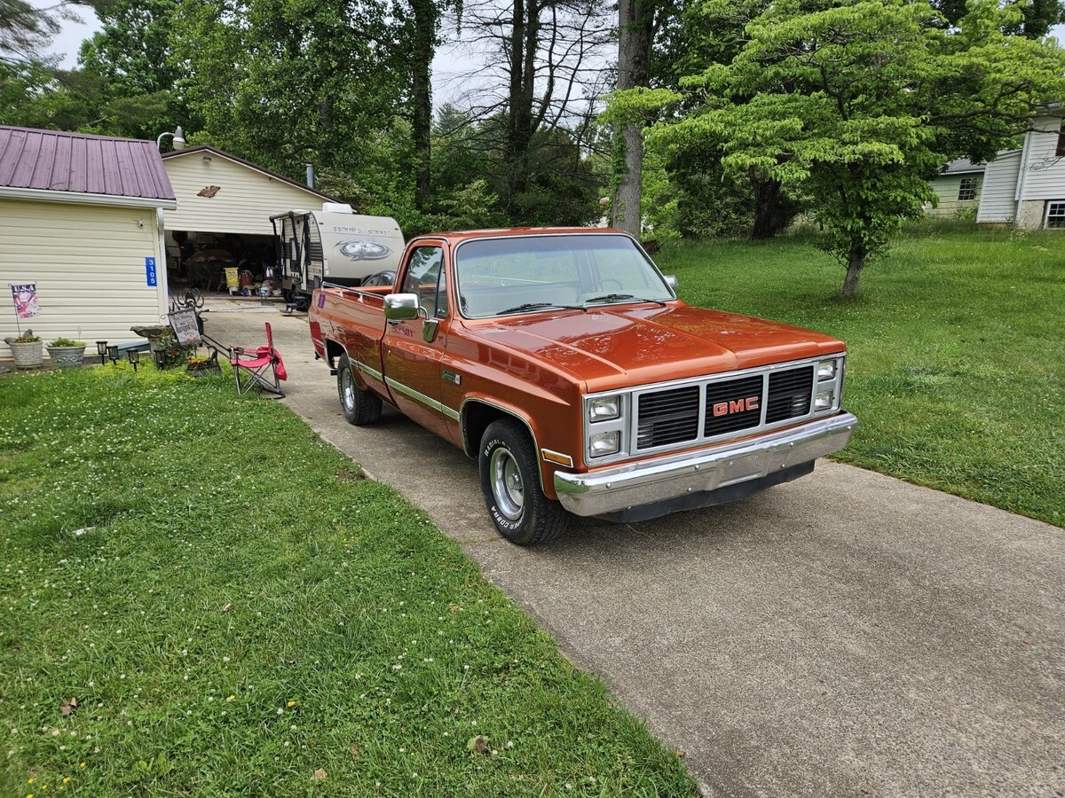 The 1986 GMC 1/2 Ton Pickup is a classic vehicle with a tan interior and orange exterior, featuring a cab and chassis body type. With automatic transmission and gas mileage, this GMC model has a clean vehicle title and 2 doors for easy access. Low mileage of 79,000 makes this pickup a reliable option for those seeking a vintage but well-maintained vehicle.Has lots of new parts paint .Ac