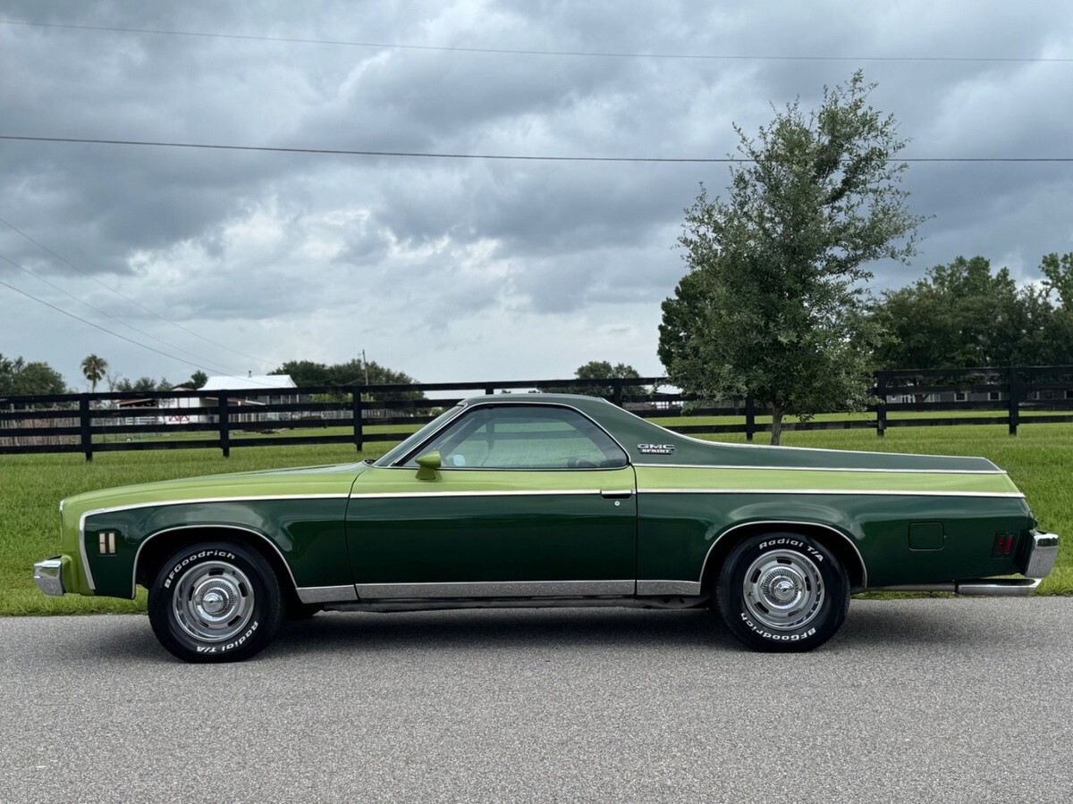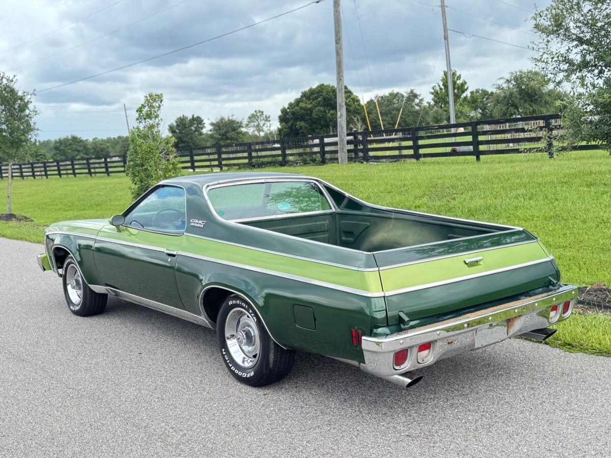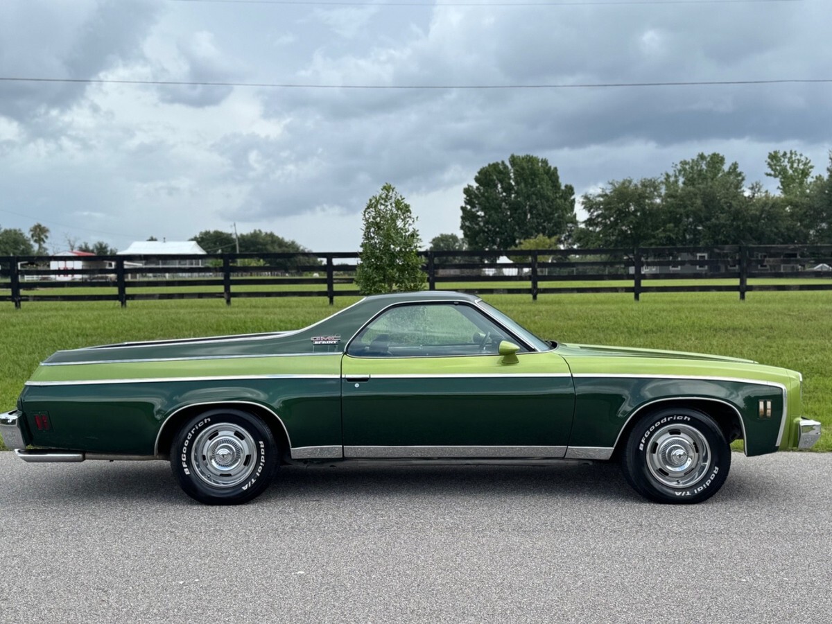 1975 GMC SPRINTThis vehicle runs and drives excellent, Starts right up with no issues does not leak any type of fluids and does not smoke. This car is a turn key Daily driver vehicle with only 108,000 original milesThe engine is an excellent condition with no mechanical issues as well as the transmissionThe engine and the transmission was rebuilt about eight years ago was less than 30,000 miles on themThe car has been restored 10 years ago as you see in the video all the photos of the restorationThe body on the car is an excellent condition as you can see it’s very straight with no dents and no major damage, The paint shines of beautiful and looks amazing.Although there is some Rust blisters here and there as you can see in the video and in the photosThe car does not have any cancer rust holes, but it does have some blistering on the passenger quarter panel as you can see in the video.Here is the link to the video so you can see the way the car runs and drives and a walk-through of the vehiclehttps://youtu.be/kDLrzFVokZU?feature=sharedThe interior is an excellent condition with no ribs and no tearsThe car has factory power, disc brakes, and power steering with air condition, but the air condition does not work. It need to be serviced.All the glass is an excellent original conditionAll the lights gauges work perfectly fine with no issuesThe undercarriage is solid, but as you can see in the photos, the driver floor is kind of getting a little weak and has a little bit rust.The bed of the truck is solid as you can see in the photosDriving this car 70-75 miles an hour The very smooth, and when you hit the brakes, it does not shake or pull to the left or rightAll in all, this is a very good solid daily driver El Camino that needs a little TLC here and there, but it is a classic and it does turn a lot of headsThis vehicle was never involved in any type of hurricanes or natural disastersI have a clean and clear Florida title in hand