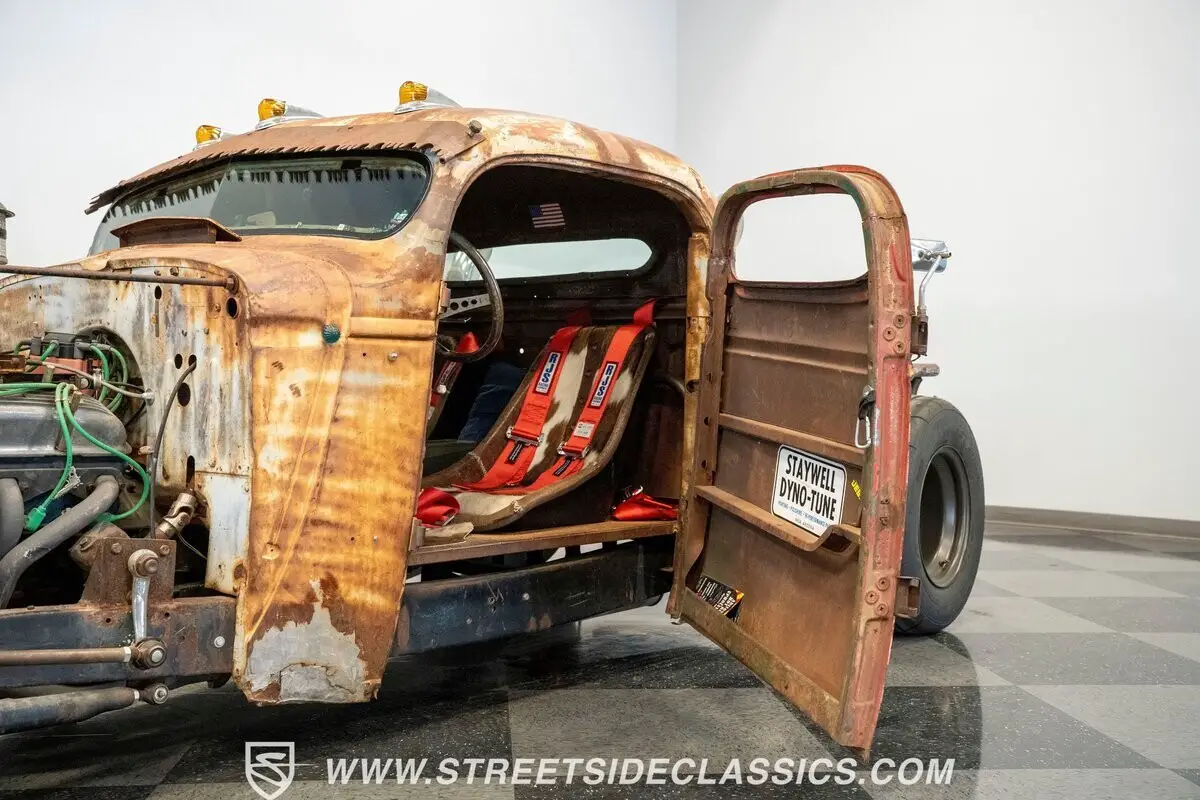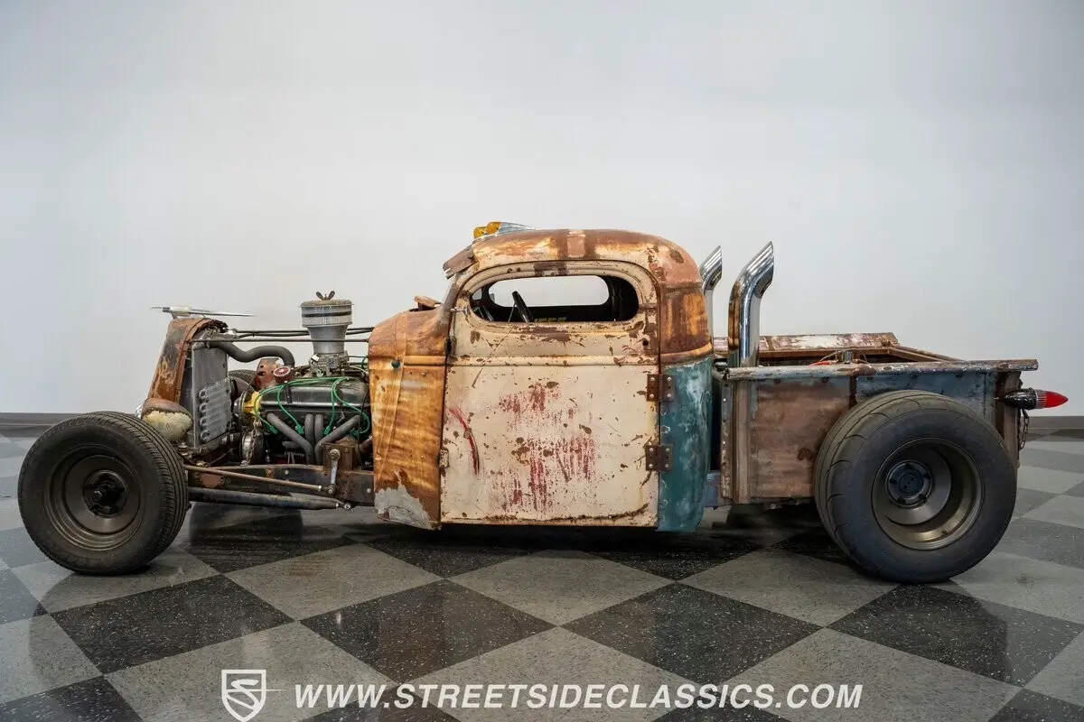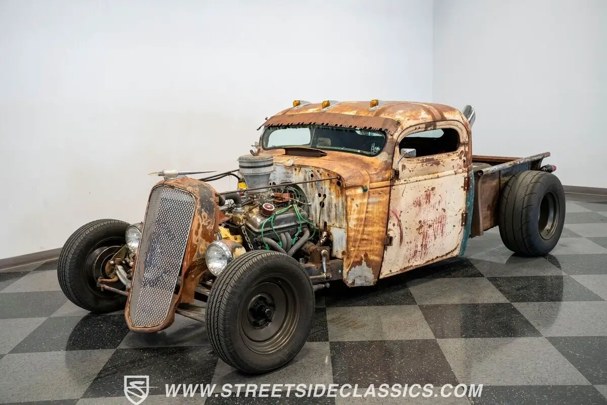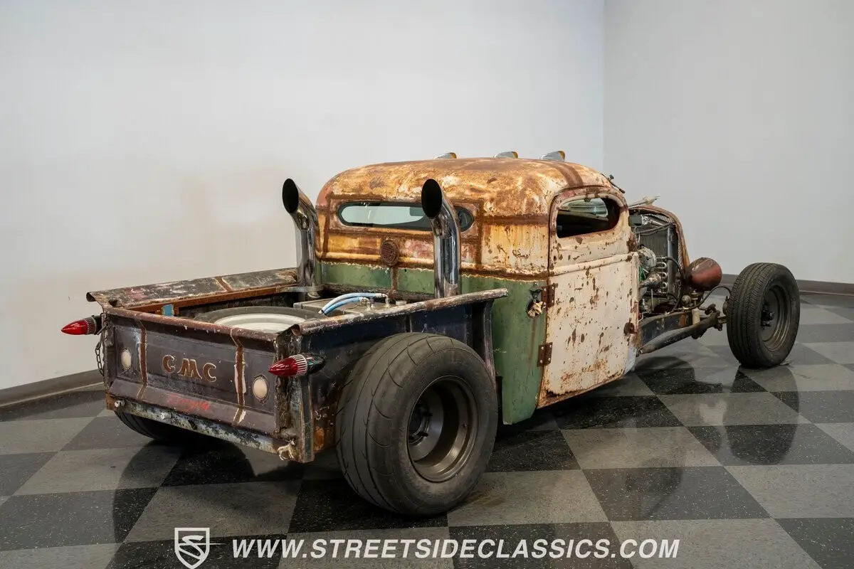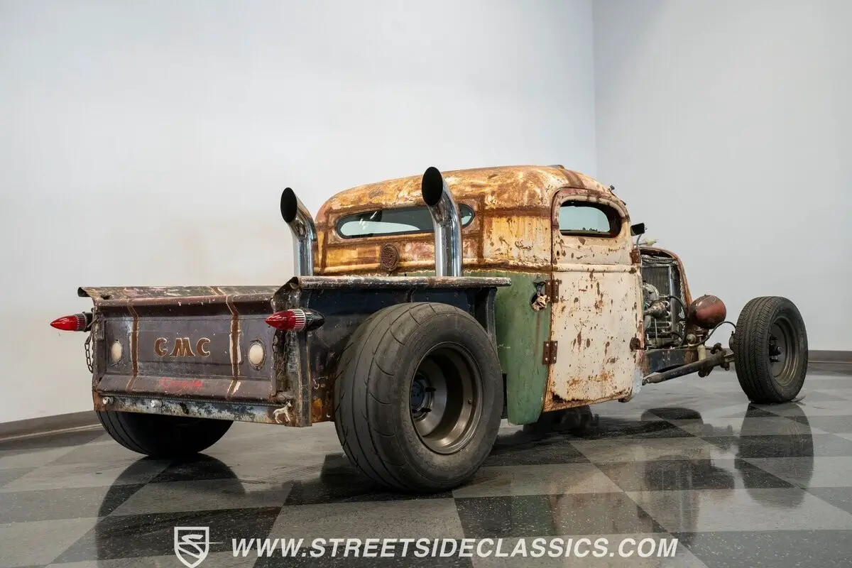 Vehicle Original VIN : 177954182-PHX 1939 GMC PICKUP Crafted by someone who clearly "took the parts and put 'em together," this 1939 GMC Pickup stands as a masterpiece of automotive imagination. Multi-colored patina adorns the exterior with layers of texture and authentic aging that rat rod aficionados crave. Detailed pinstriping adorns the metal grill and headlight buckets, while custom touches like the sawblade sunvisor, external door hinges, and exhaust stacks punctuate its rebellious character. The chopped and channeled cab sits atop 15" wheels wrapped in 195/65R15 Road Tour rubber up front and wide 295/55R15 Mickey Thompson tires in the rear-a combination that gives this pickup a menacing stance that demands attention. Brown vinyl and hair-covered bucket seats equipped with five-point harnesses anchor the purposefully unrefined interior. An ammo box cleverly serves as the center console while a grenade functions as the shift knob-just two of many ingenious modifications throughout the cabin. Welded vice grips operate as door latches alongside a worn deep dish steering wheel. Gauges mounted in a repurposed taillight bucket and dummy gauges fixed to the center panel demonstrate mechanical artistry. The sticker-covered headliner adds the final touch to a space that perfectly balances chaotic creativity with functional design. Marine-sourced Chevy 350 V8 provides the muscle for this rolling collage of automotive parts. Aluminum Edelbrock intake manifold feeds a matching 4-barrel carburetor while rebuilt Dart heads and a mild cam improve breathing capabilities. Long tube headers connect to dual exhaust stacks producing an unmistakable growl. A TH350 3-speed automatic transmission featuring a shift kit transfers power to the Ford 9-inch rear end with authority. Front disc brakes and suspension consisting of an I-beam setup with mono leaf springs and shocks work together with the solid axle rear arrangement to deliver a properly nostalgic driving sensation. HIGHLIGHTS: • 5.7 Liter V8 Marine Engine (Chevy 350) • 3 Speed Automatic Transmission (TH350) with Shift Kit • Dart Heads (Rebuilt) • Mild Cam • Edelbrock Intake Manifold • Edelbrock 4-Barrel Carburetor • Long Tube Headers • Dual Exhaust Stacks • Ford 9-Inch Rear End • Aluminum Radiator • Oil Cooler • Front Disc Brakes • I-Beam Front Suspension with Mono Leaf Spring and Shocks • Solid Axle Rear Suspension with Leaf Springs and Shocks • Multi-Color Patina Exterior • Chopped and Channeled Cab • 15" Wheels • 195/65R15 Front Road Tour Tires, 295/55R15 Rear Mickey Thompson Tires • 215/70R15 Spare Tire • External Door Hinges • Fuel Cell in Bed • Custom Pinstriping • Brown Interior with Vinyl and Hair Seat Bucket Seats • 5-Point Harnesses • Ammo Box Center Console • Grenade Shift Knob • Deep Dish Steering Wheel • Tachometer Mounted in Taillight Bucket • Dummy Gauges Mounted in Center • Build Picture Book Assembled from fifty donor vehicles by someone who knew exactly what they wanted, this 1939 GMC Pickup embodies true mechanical creativity. From its chopped cab and marine-sourced 350 V8 to the countless custom touches throughout, this pickup delivers an authentic rat rod experience unlike any other on the market. Call today!