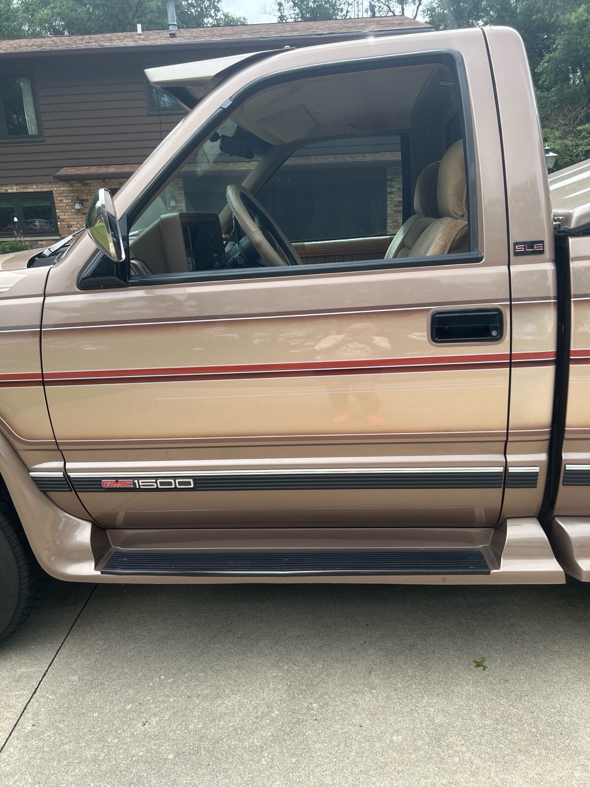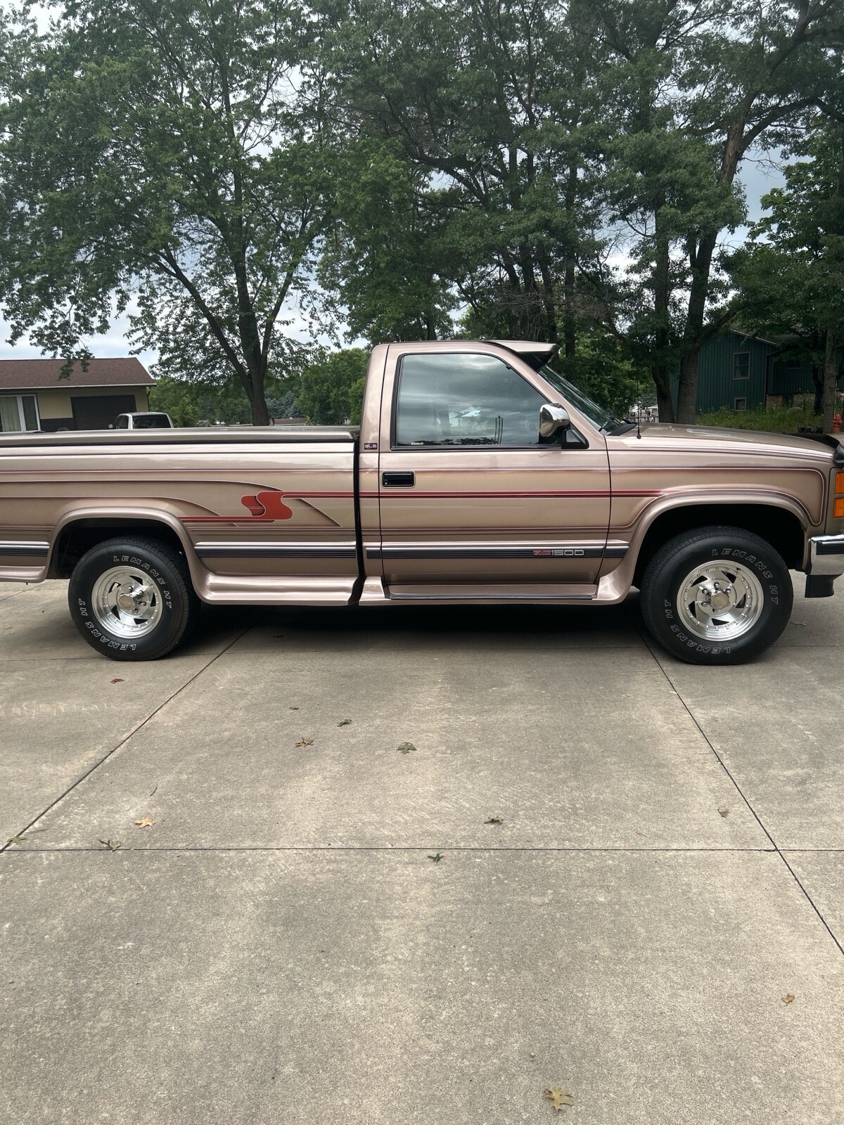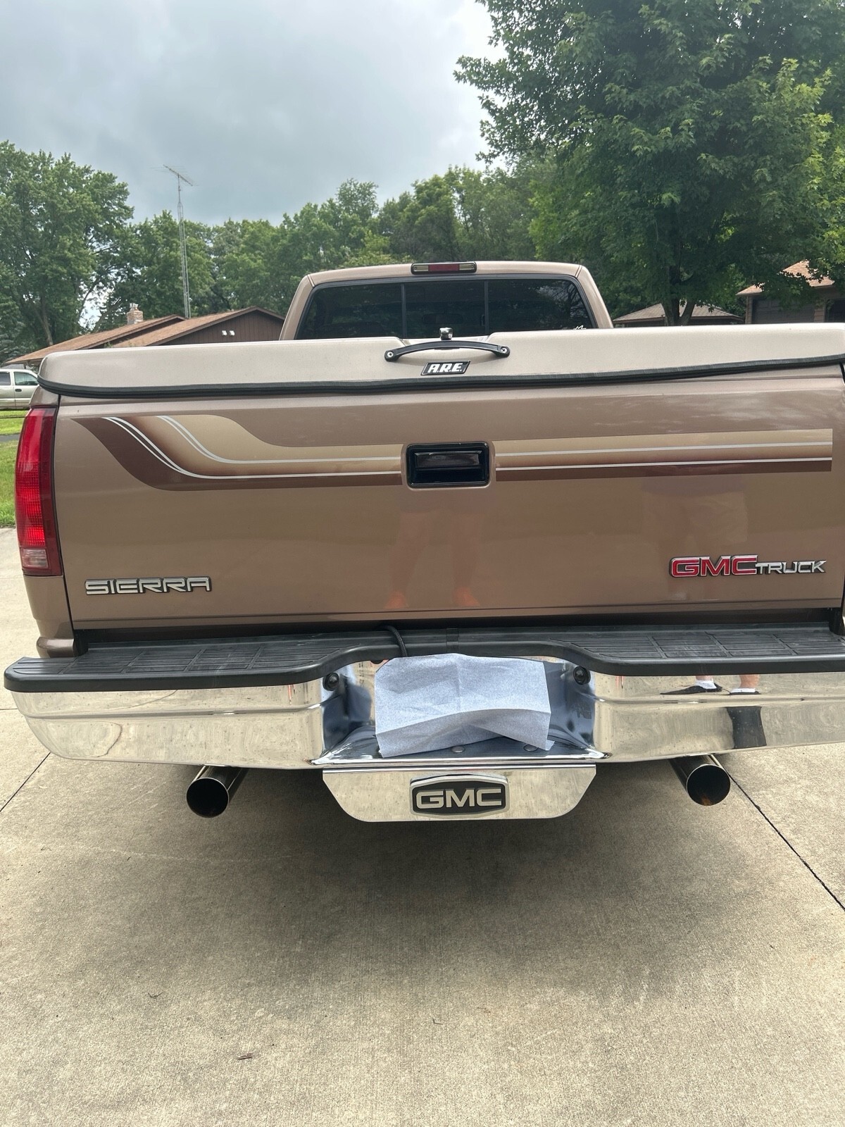 GMC SLE 1994 Sierra 1500 (only 64,114 miles) 4WD V8 350 cubic inch motor. A must see to appreciate. 8 ft box w A.R.E. fiberglass cover. Fantastic condition inside and out - one owner. Built in Running boards, sliding rear window, tires good, flex steel seats, chrome wheels, dual pipes, LUND sun visor, and trailer hitch behind GMC logo on bumper. Has Waldoch conversion kit so the paint job is very unique (no pinstripes) . The color is how it was painted.