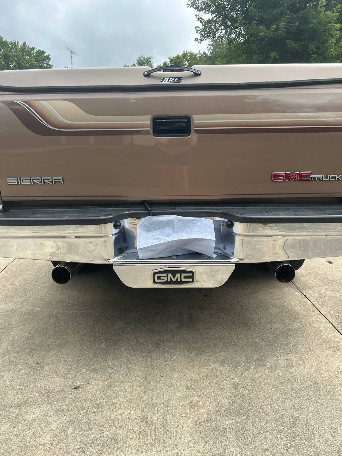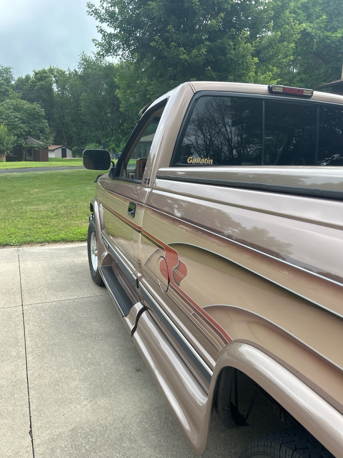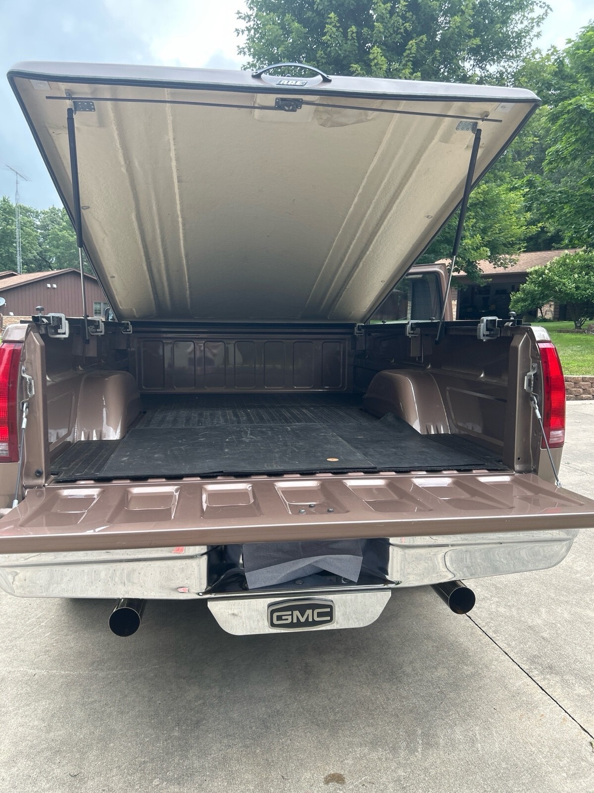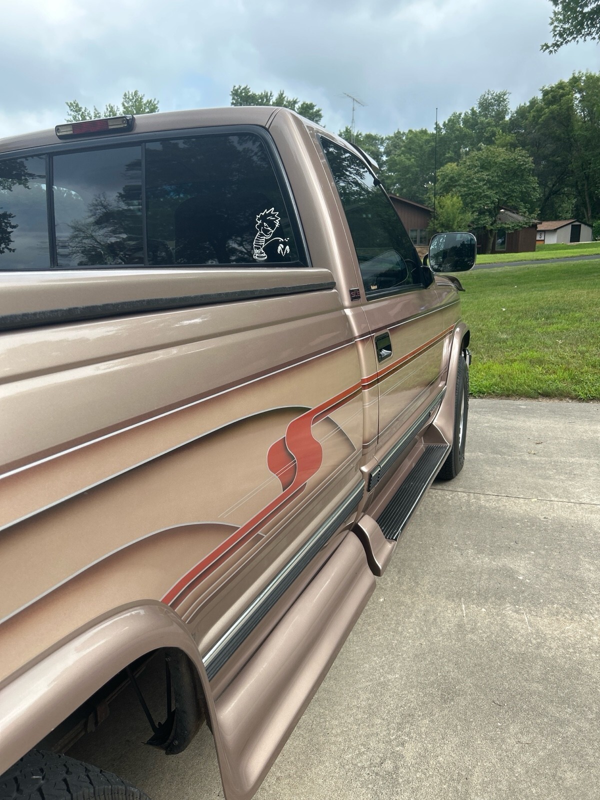 GMC SLE 1994 Sierra 1500 (only 64,114 miles) 4WD V8 350 cubic inch motor. A must see to appreciate. 8 ft box w A.R.E. fiberglass cover. Fantastic condition inside and out - one owner. Built in Running boards, sliding rear window, tires good, flex steel seats, chrome wheels, dual pipes, LUND sun visor, and trailer hitch behind GMC logo on bumper. Has Waldoch conversion kit so the paint job is very unique (no pinstripes) . The color is how it was painted.