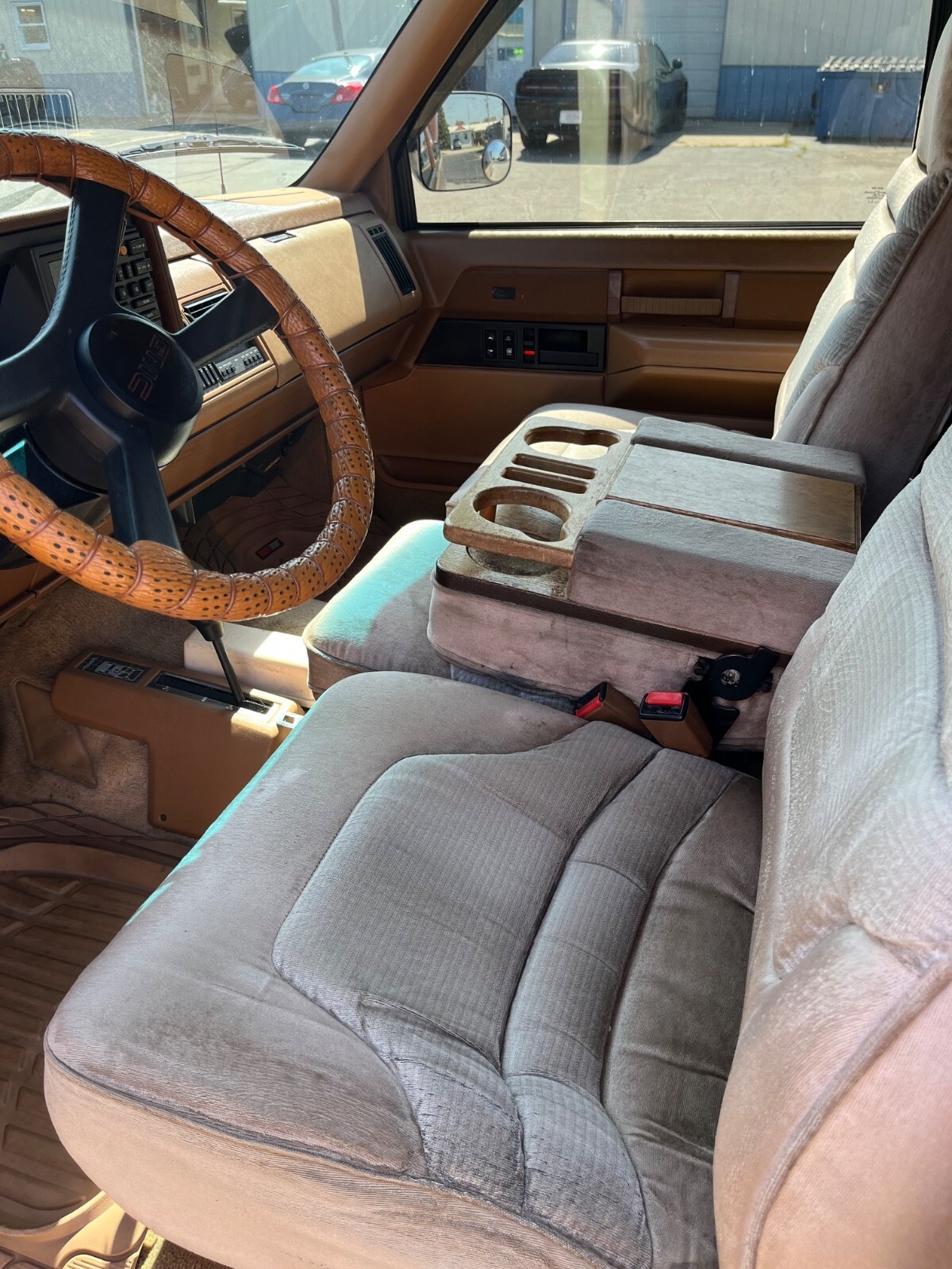 1989 GMC Sierra SLE 2500 4x4. Body has 180,000 miles. New, Jasper crate motor (350) professionally installed 3 years ago. Has aftermarket front seats. All original carpet and back seat. Headliner is tight. Dash is nearly perfect. No cracks or serious wear of any kind. Cruise control does not work. A/C needs to be charged, but all components for it are in place and working. Tires are 2 years old. Has a slight lift kit on it. Bed is Rhino lined. Runs and drives out great. Steering has typical older truck play in it. New drive shaft and U joints installed 2 years ago. Overall, very solid old truck. Message with any further questions. Thanks!!