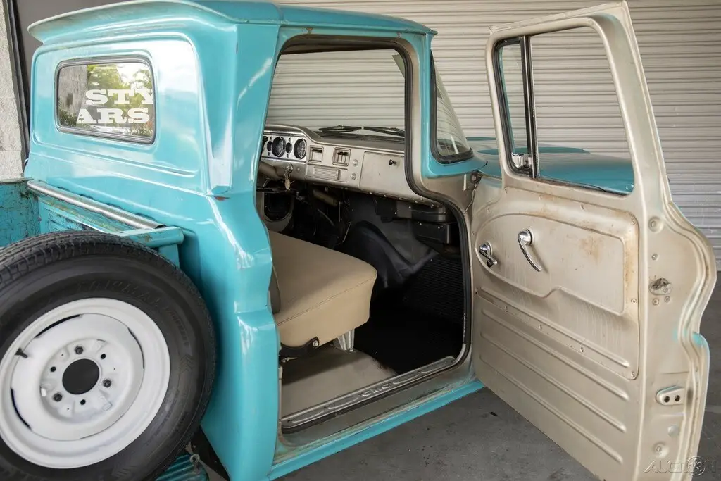 1963 GMC Stepside truck: Original paint; original interior; stored 40 years in a Texas warehouse; 60k original miles; new tires; engine runs well. We purchased this truck along with a collection of 15 vehicles in La Grange, Texas. The owner was a retired estate liquidator and he had his collection of low-mile cars stored in two large warehouses, all in good condition. None of the vehicles had been started in at least 30 years. We cleaned the car and got the engine running, after 40 years idle it runs even and sounds healthy. All other mechanical systems need to be checked prior to driving. Please study the pictures carefully rather than requesting descriptions. Please complete any inspections or ask any questions prior to bidding or committing to buy the car. Thanks for the interest!