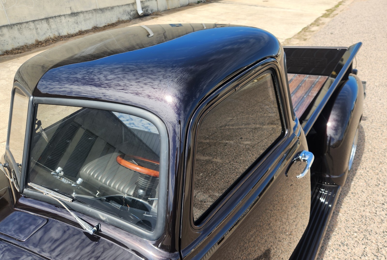Stripped to bare metal and show quality paint and body work. Dark black cherry metallic / black in the shade. ALL STEEL no fiberglass . New reproduction tinted glass and seals (not a film) New chevy grill bumpers and emblems (2022)