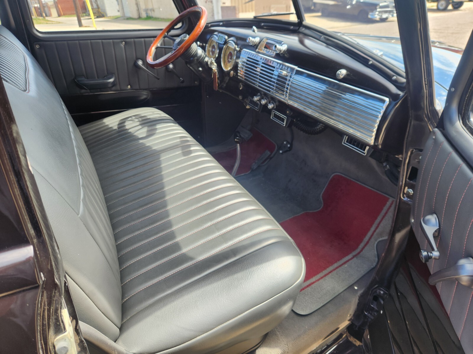 Custom Upholstered charcoal door panels, seat, new carpet and replacement headliner. Retro sound modern radio. Tilt steering column and Custom steering wheel (2023)