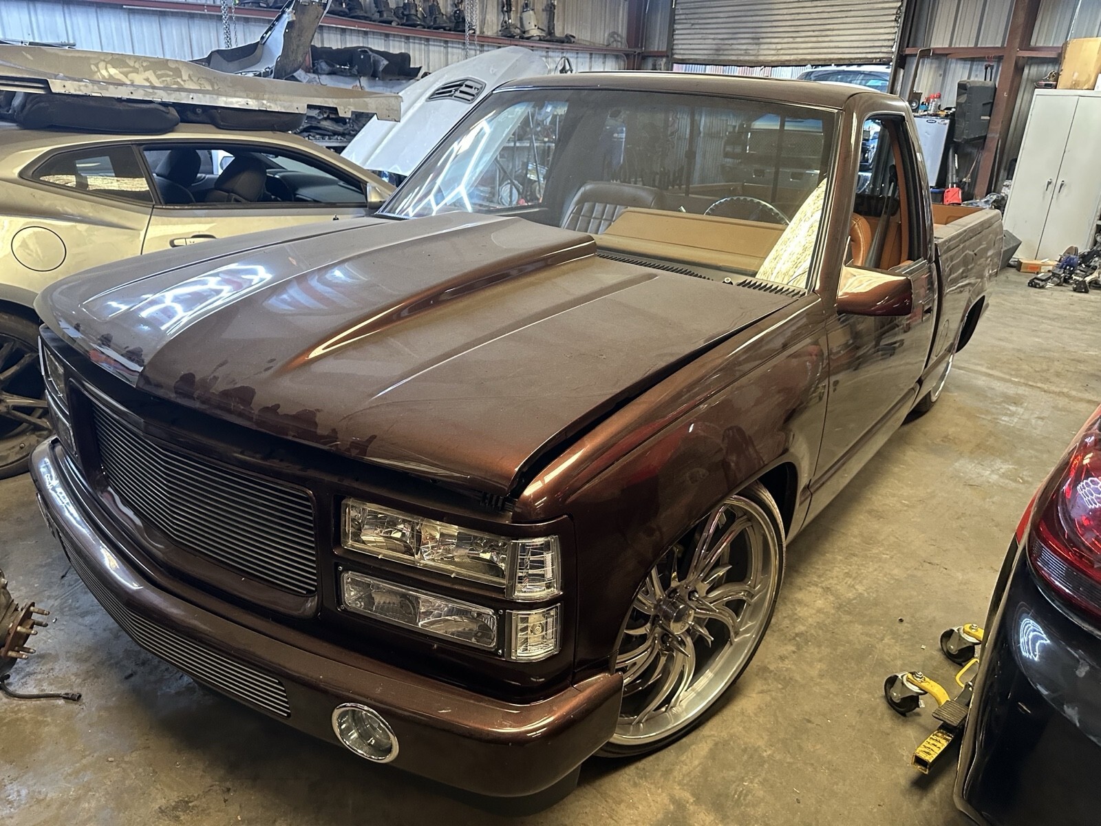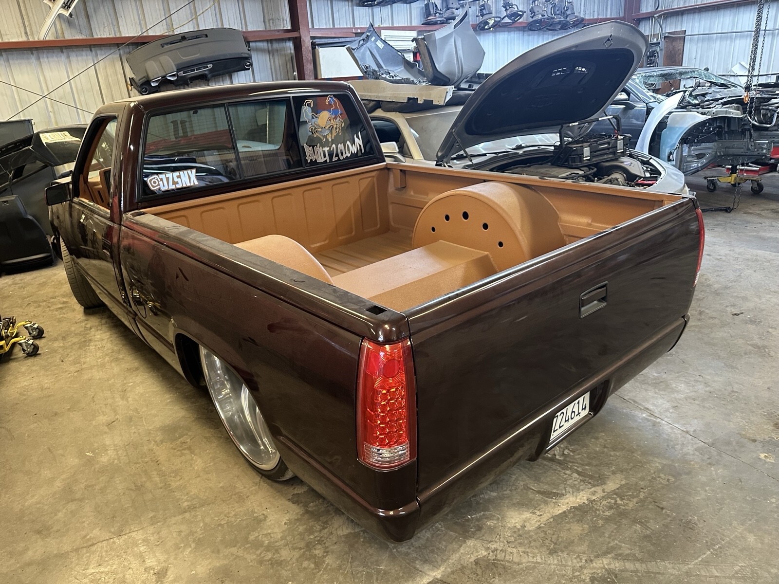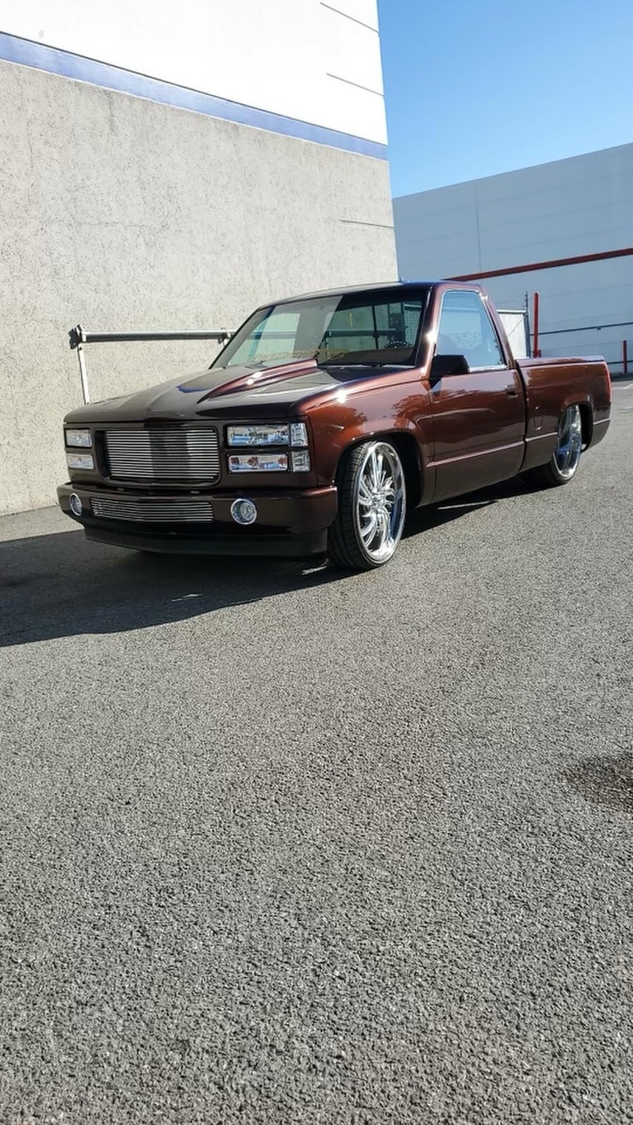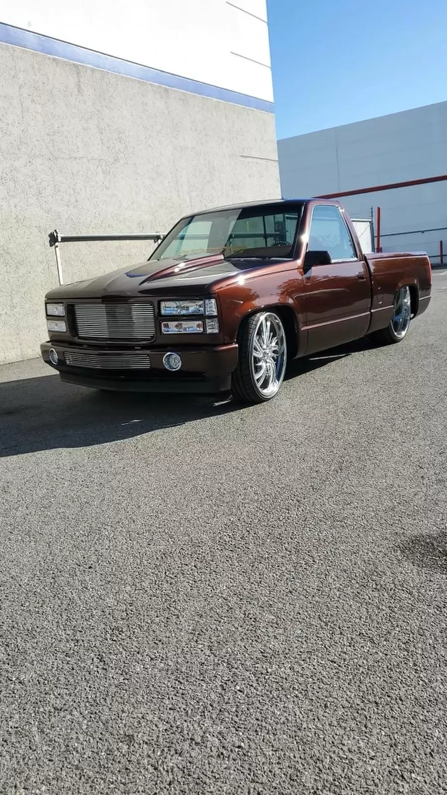 The 1990 GMC Sierra is a modified vehicle with updates to the exterior, interior, and drivetrain. The owner has had it for 1 year and has driven it to car shows. The vehicle is in a unique brown color with a clean title and has a mileage of 185,807. It is a reliable and eye-catching option for those looking for a special car to showcase at events.