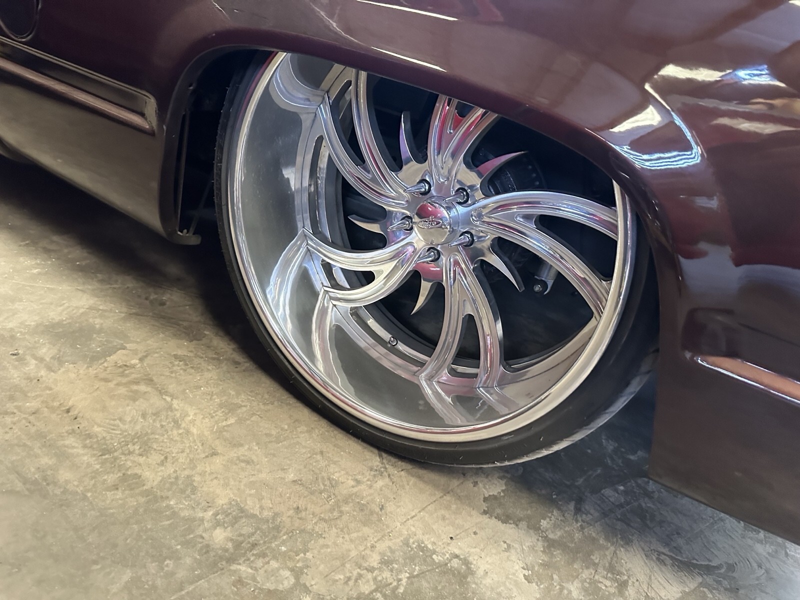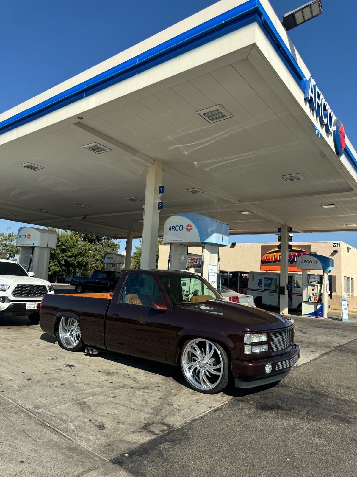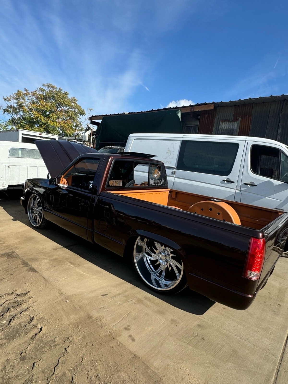 Sadly we’re forced to sale our truck because of silly state laws and regulations that requires the truck to be back to stock original running gear and components in order to be legal in the state of California, we absolutely love the truck it looks amazing the paint is about two years old runs and drives great handles the road very well, engine was originally in a 2005 Cadillac Escalade some machine work was done to the engine in order to keep up with the supercharge, there’s a mild cam on it and the truck sounds amazing, automatic transmission 4l89e stage 2 built to handle the engine,interior is wrapped on peanut butter color vinyl,wheels are 26x10 and 26x14 rear