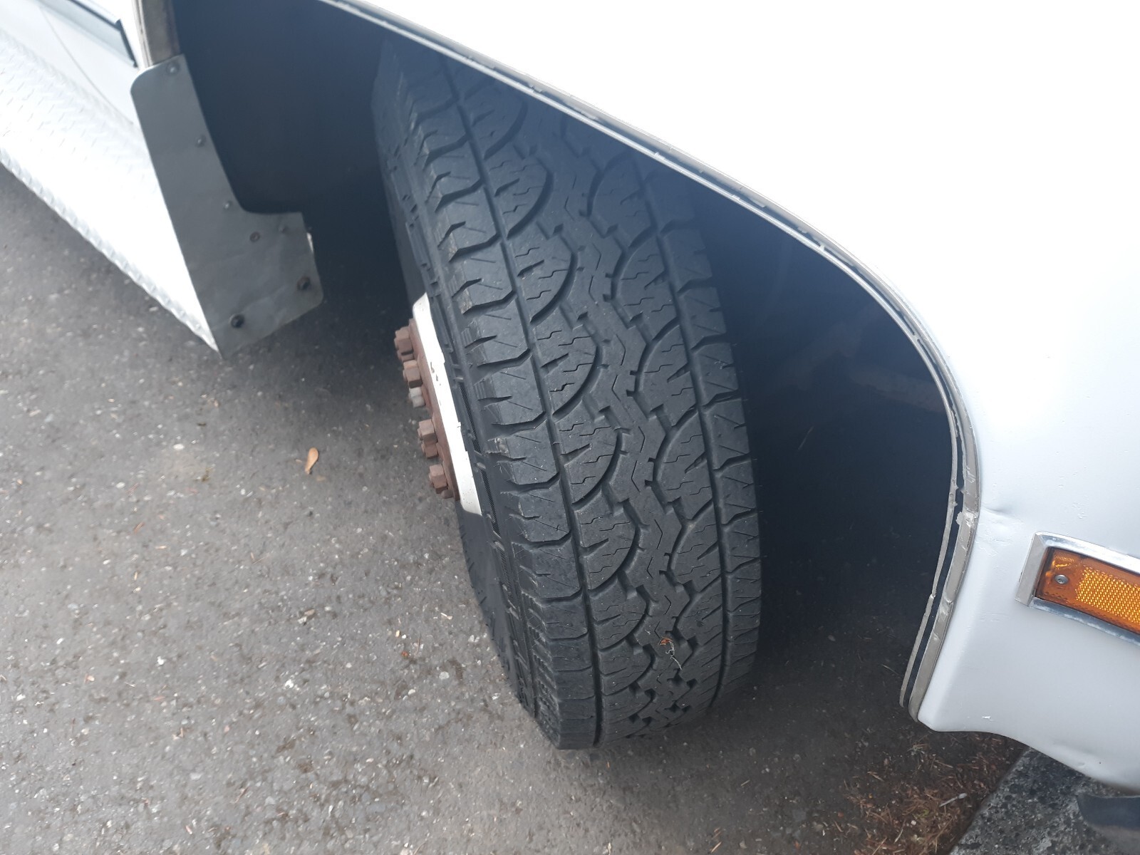 No rust holes, some dents, rough paint (work truck). Excellent running, clean title, good tags, solid daily driver. Very good GT Adventuro AT3 10ply tires, within the past two years - new Powermaster 150a high output alternator, new power steering pump, new steering box, 2x new Napa Legend 800cca starter batteries, new front brakes & calipers, no play in steering. Remote fuel filter, push button glows, new glow plugs. All lighting & accessories work (except outside cab light), running lights wired as accessory wigwag strobe. Tilt steering, CUCV brush guard, Lund visor, full length aluminum steps, Reese Towpower brake controller.