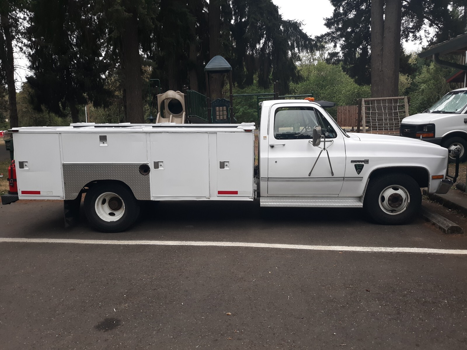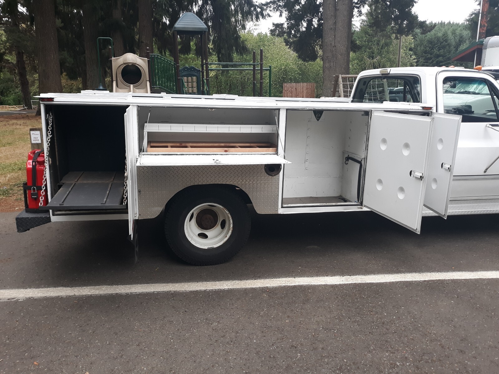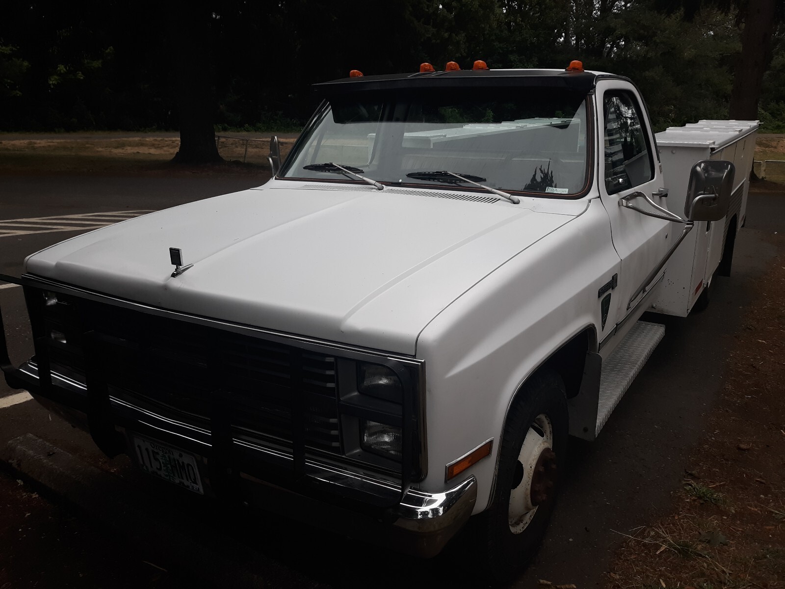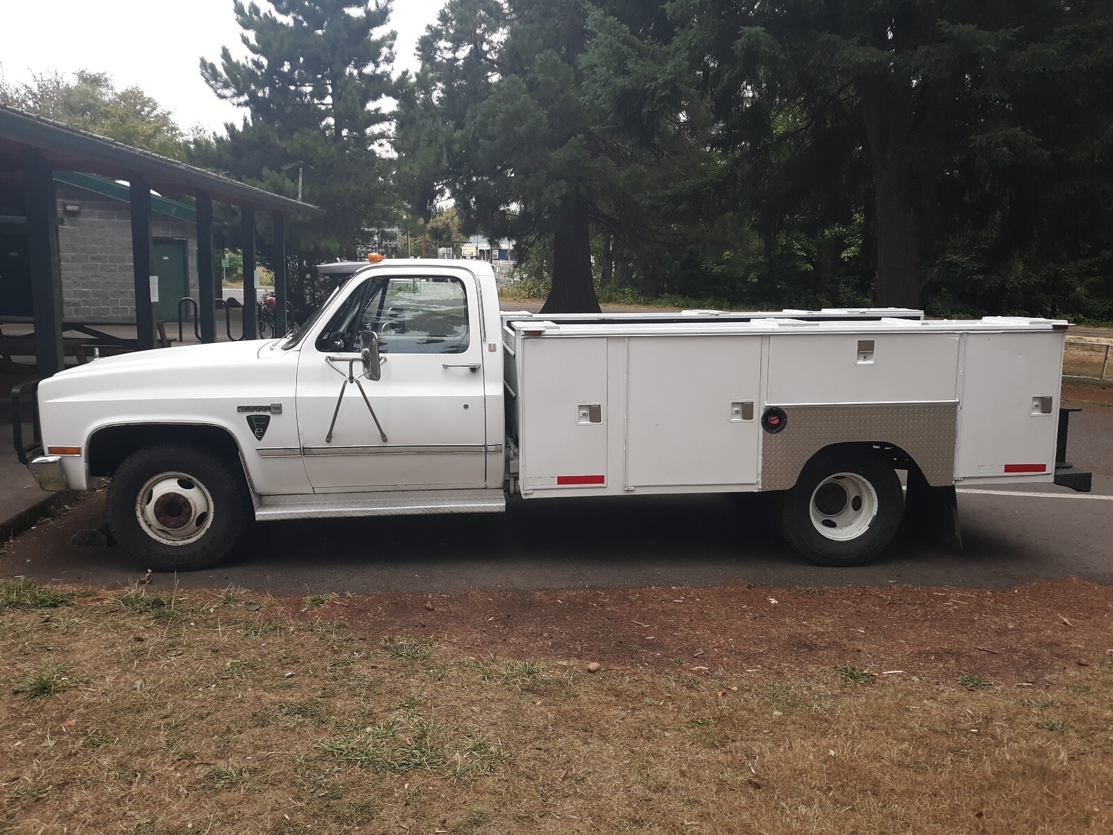 1983 Squarebody GMC C30 High Sierra 1 ton cab & chassis 3sp auto, factory tow package dually with 11' Stahl utility body. 23,493 miles on odo, BF Goodwrench 6.2 diesel (AC compressor delete).